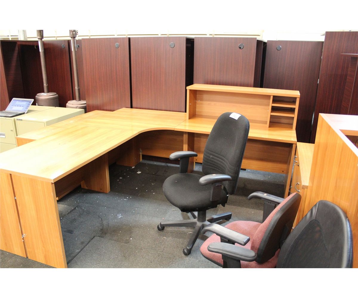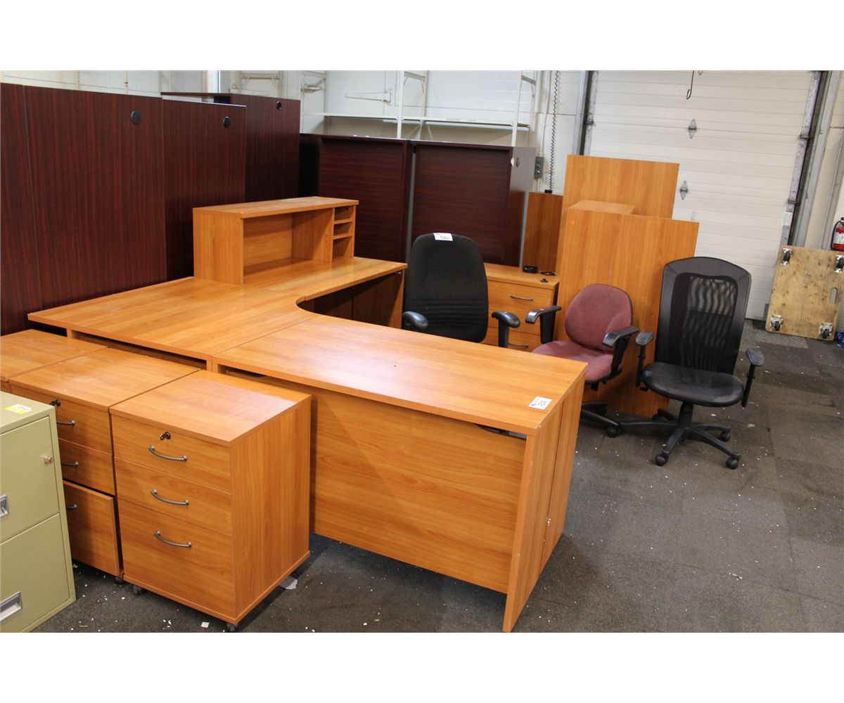 LARGE LOT OF ASSORTED CHERRY OFFICE FURNITURE