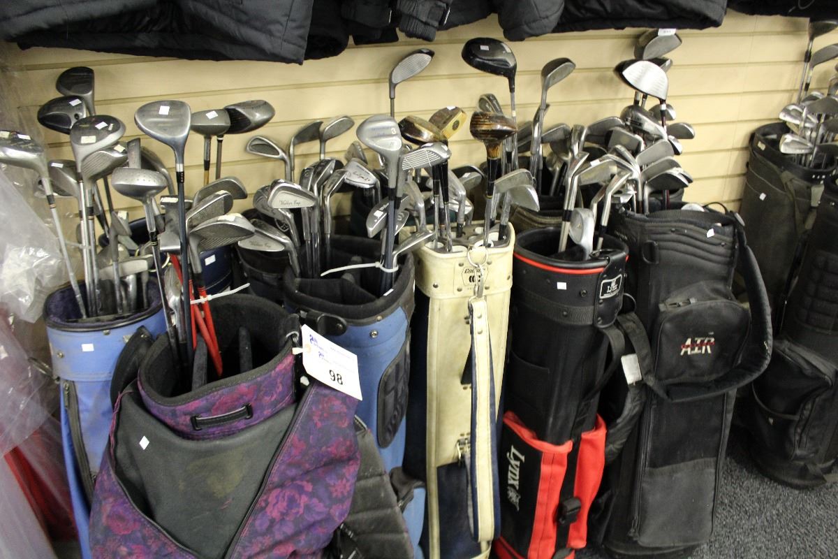 LARGE LOT OF ASSORTED GOLF CLUBS & BAGS