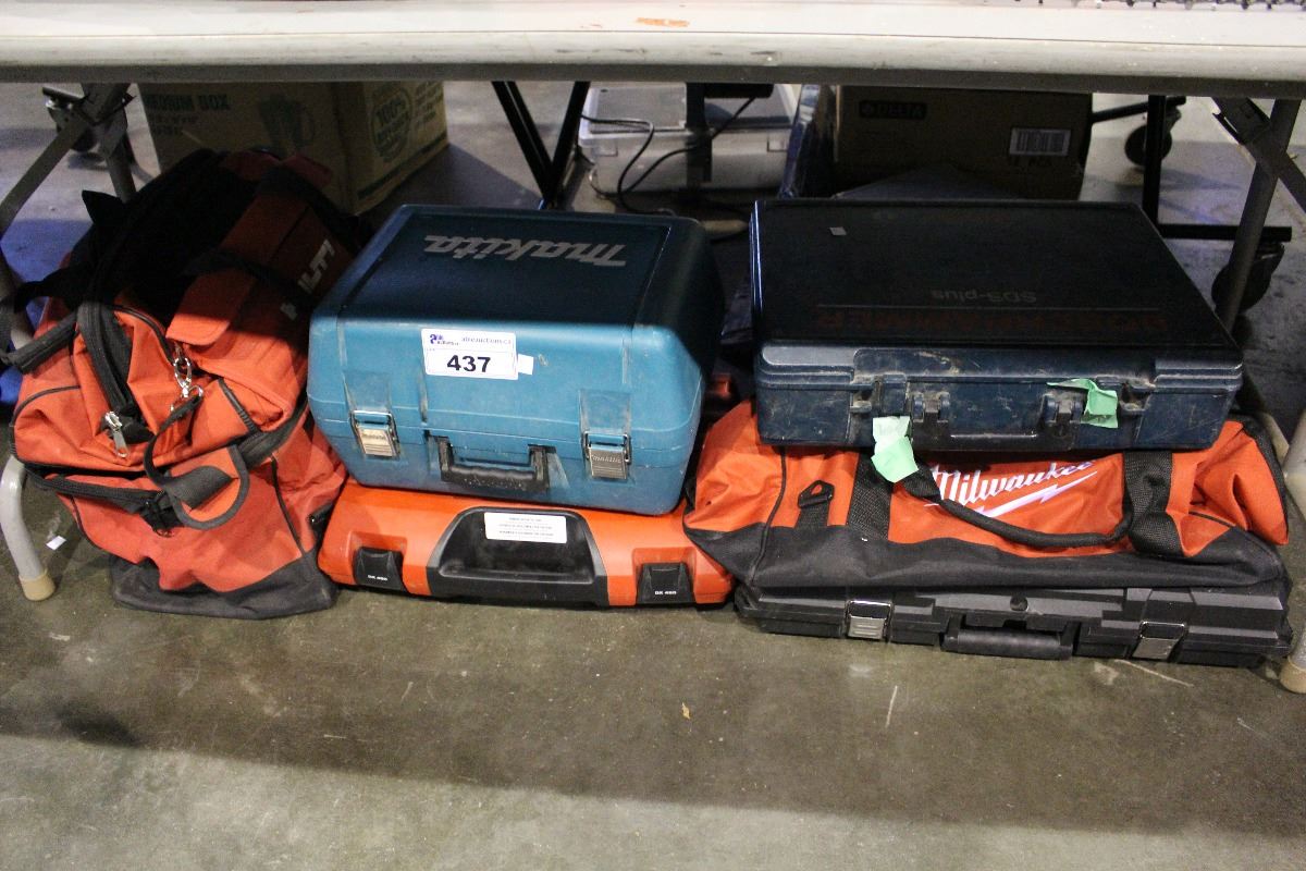 LARGE LOT OF ASSORTED HARD TOOL CASES AND TOOL BAGS