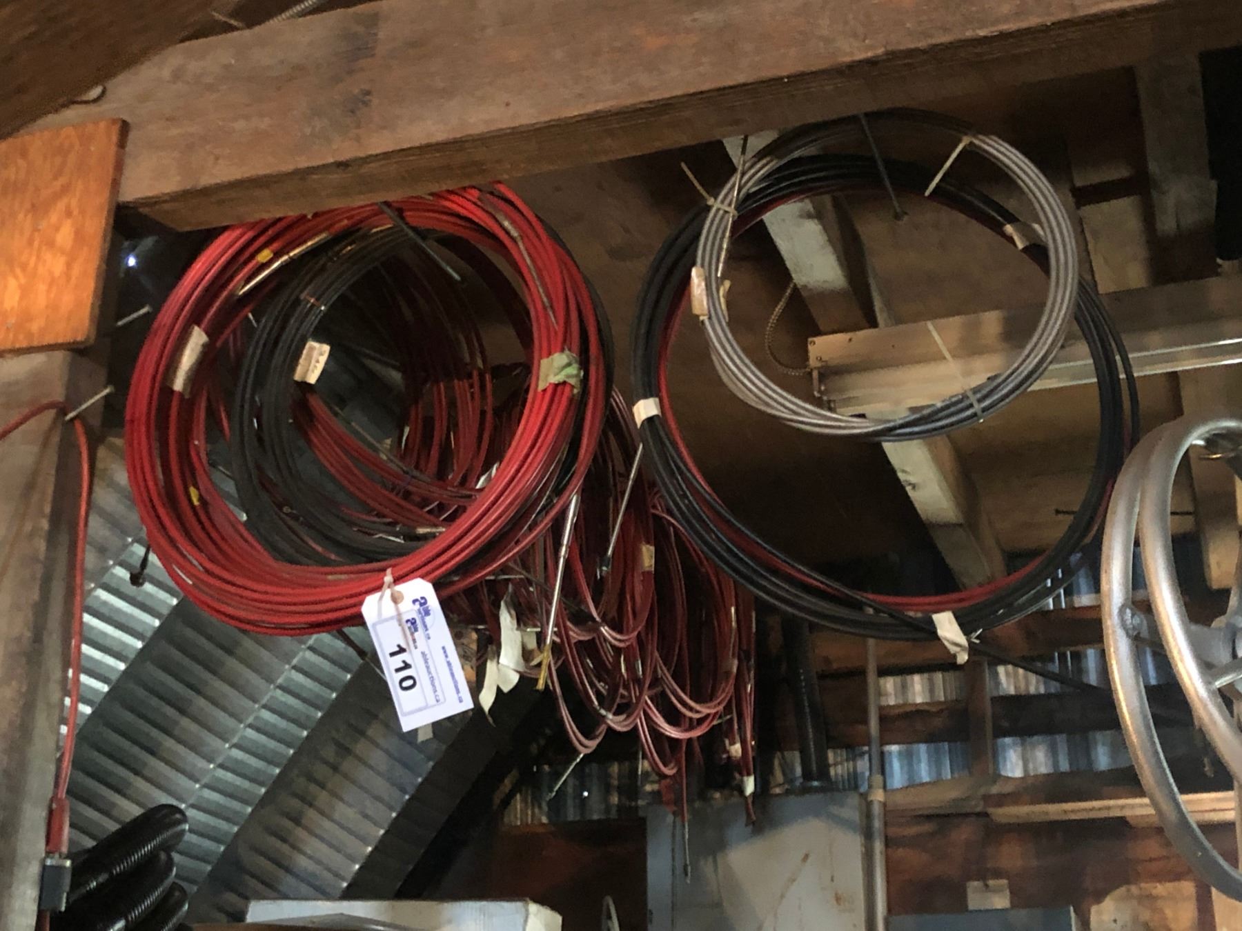 LARGE LOT OF ASSORTED HOSE, ELECTRICAL CABLE, BOAT CONTROL LINES AND MORE