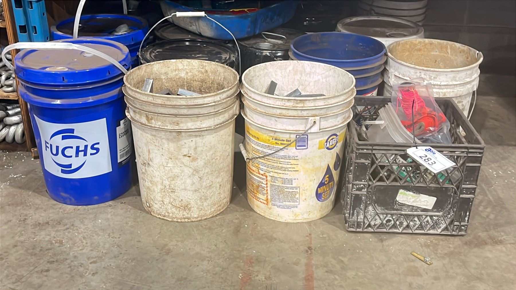 LARGE LOT OF ASSORTED METAL SCRAPS, HARDWARE & ASSORTED LUBRICANTS/COMPOUNDS