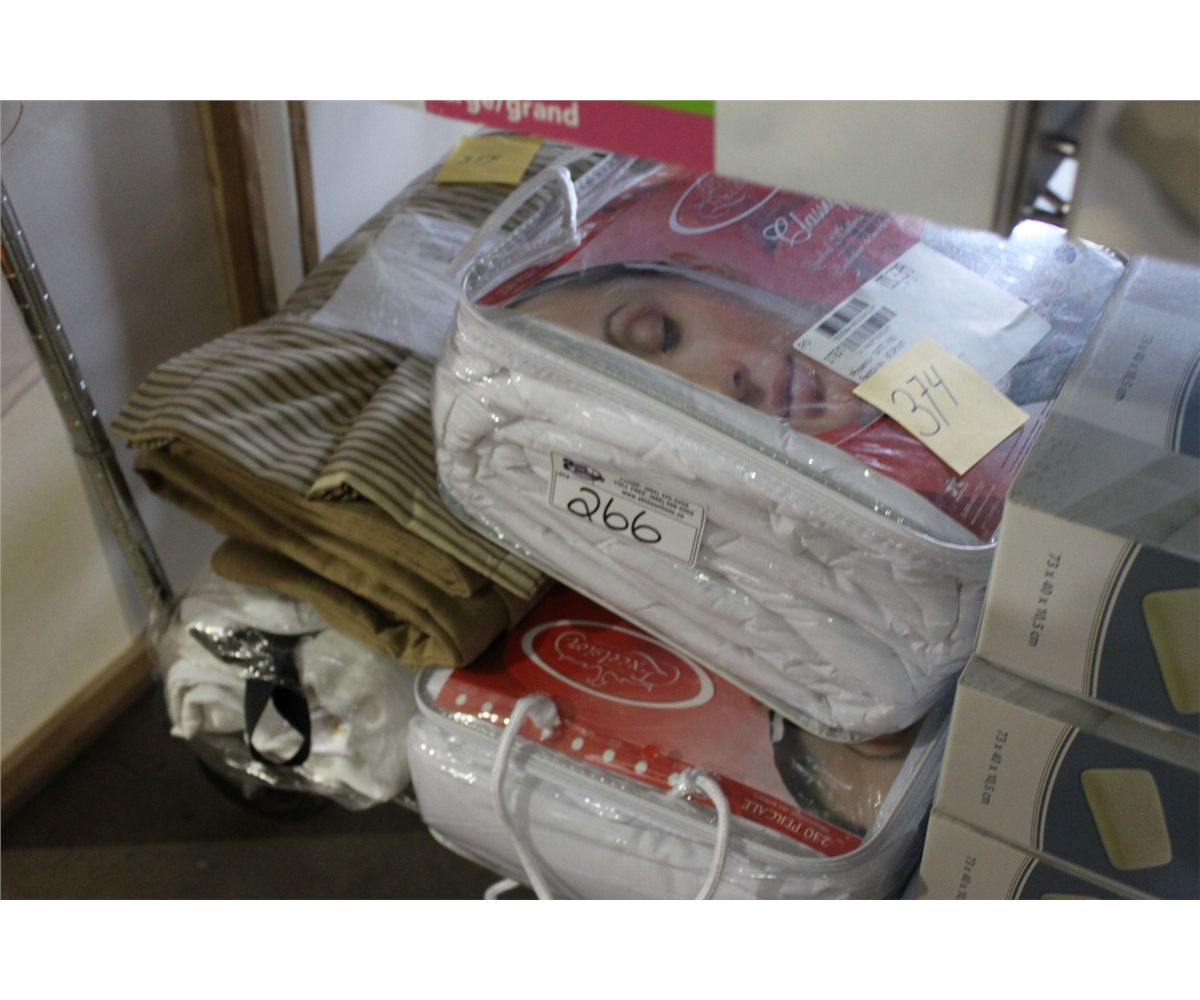 LARGE LOT OF ASSORTED PILLOWS, DUVETS & BEDWARE