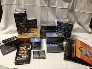 LARGE LOT OF ASSORTED STAR TREK GAME AND TRADING CARDS FACTORY SEALED PLUS EMPTY BINDERS INCLUDES STAR TREK 1994 MASTER SERIES PLUS GENERATIONS PLUS TNG AND PARTIAL OPEN SERIES II BOX