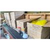 LARGE LOT OF ASSORTED TILE STOR SUPPLIES; DISPLAY BOARDS, WEDGES, WORK TABLE, ASSORTED TILES AND