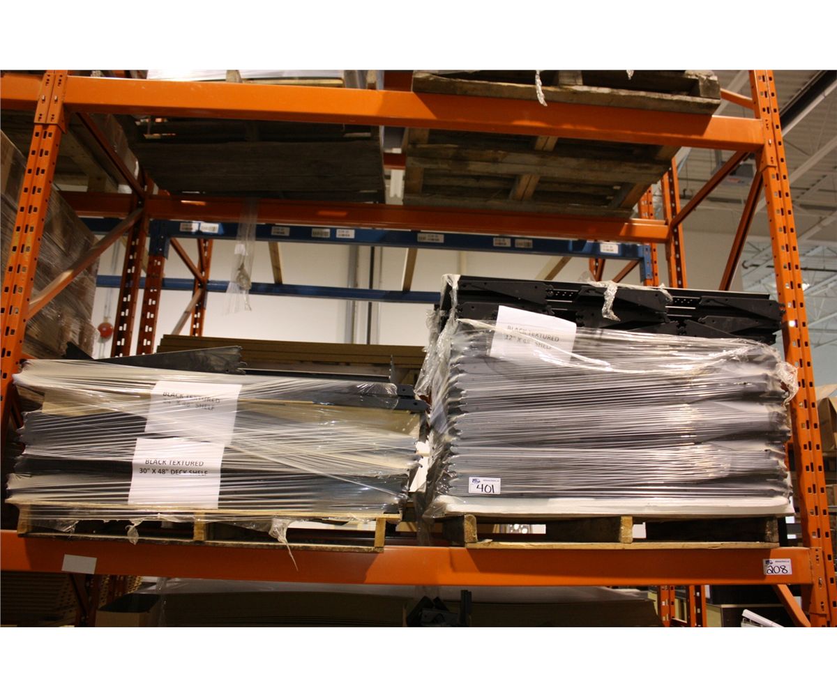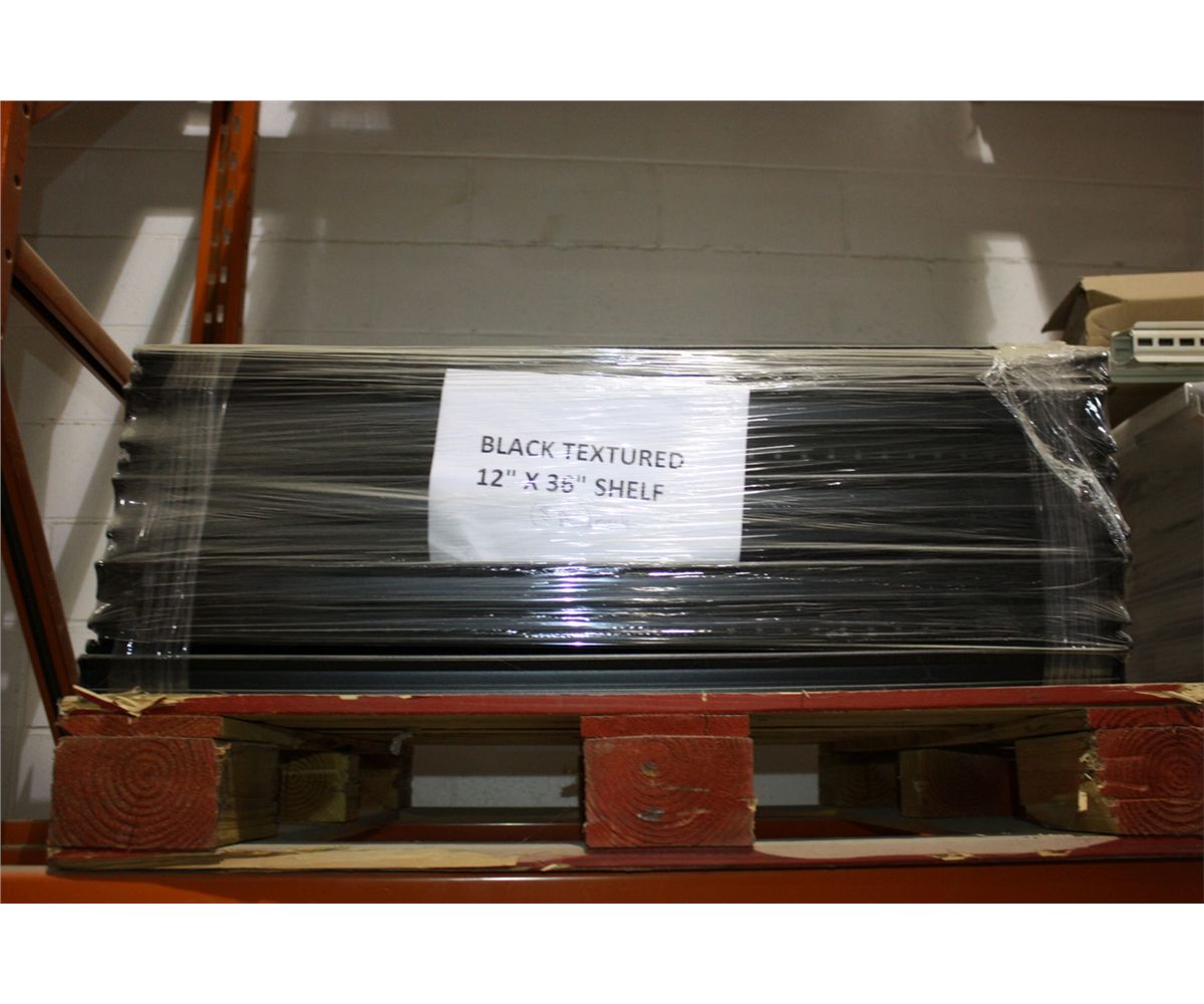 LARGE LOT OF BLACK RETAIL DISPLAY SHELVES AND UPRIGHTS