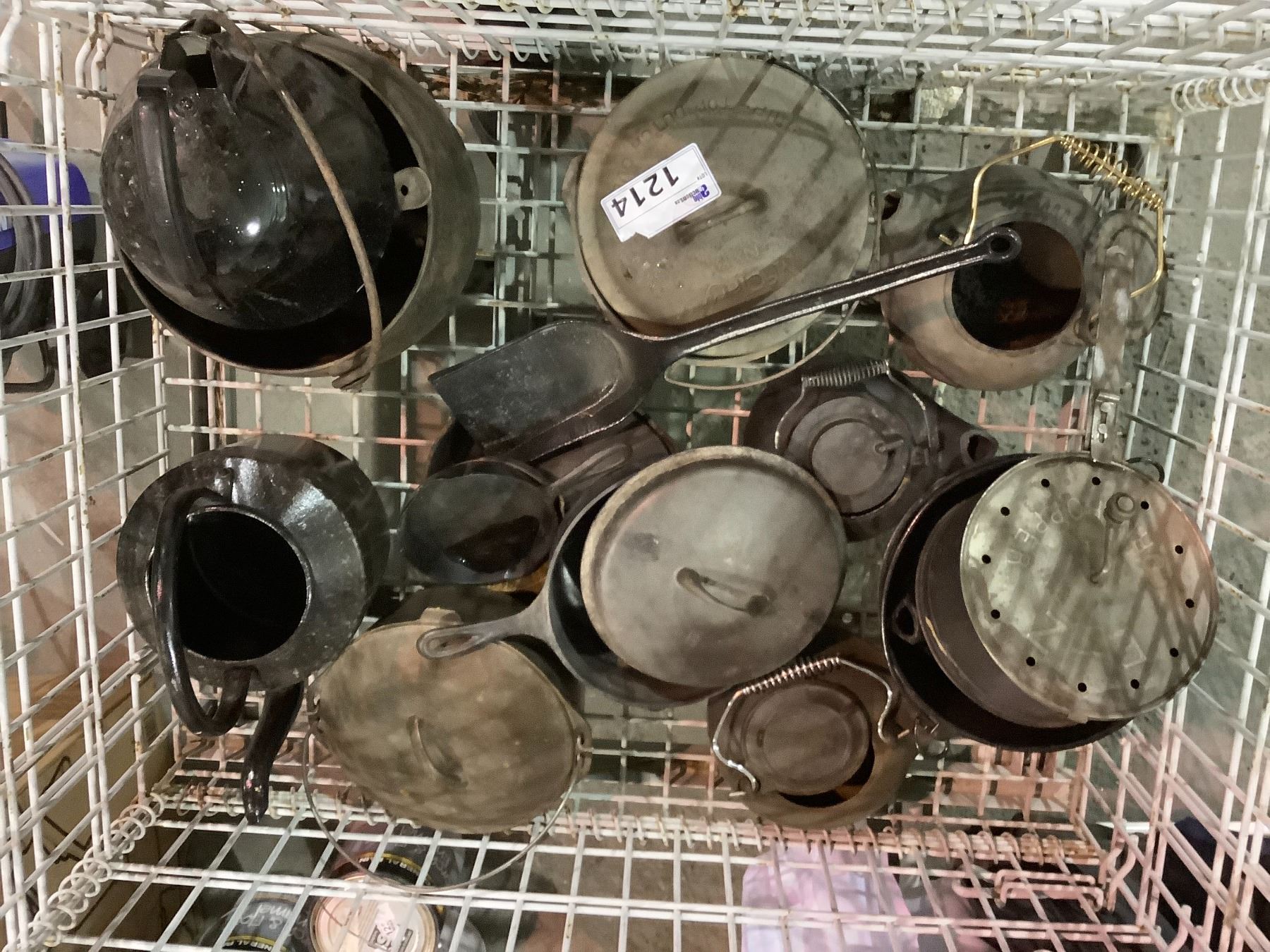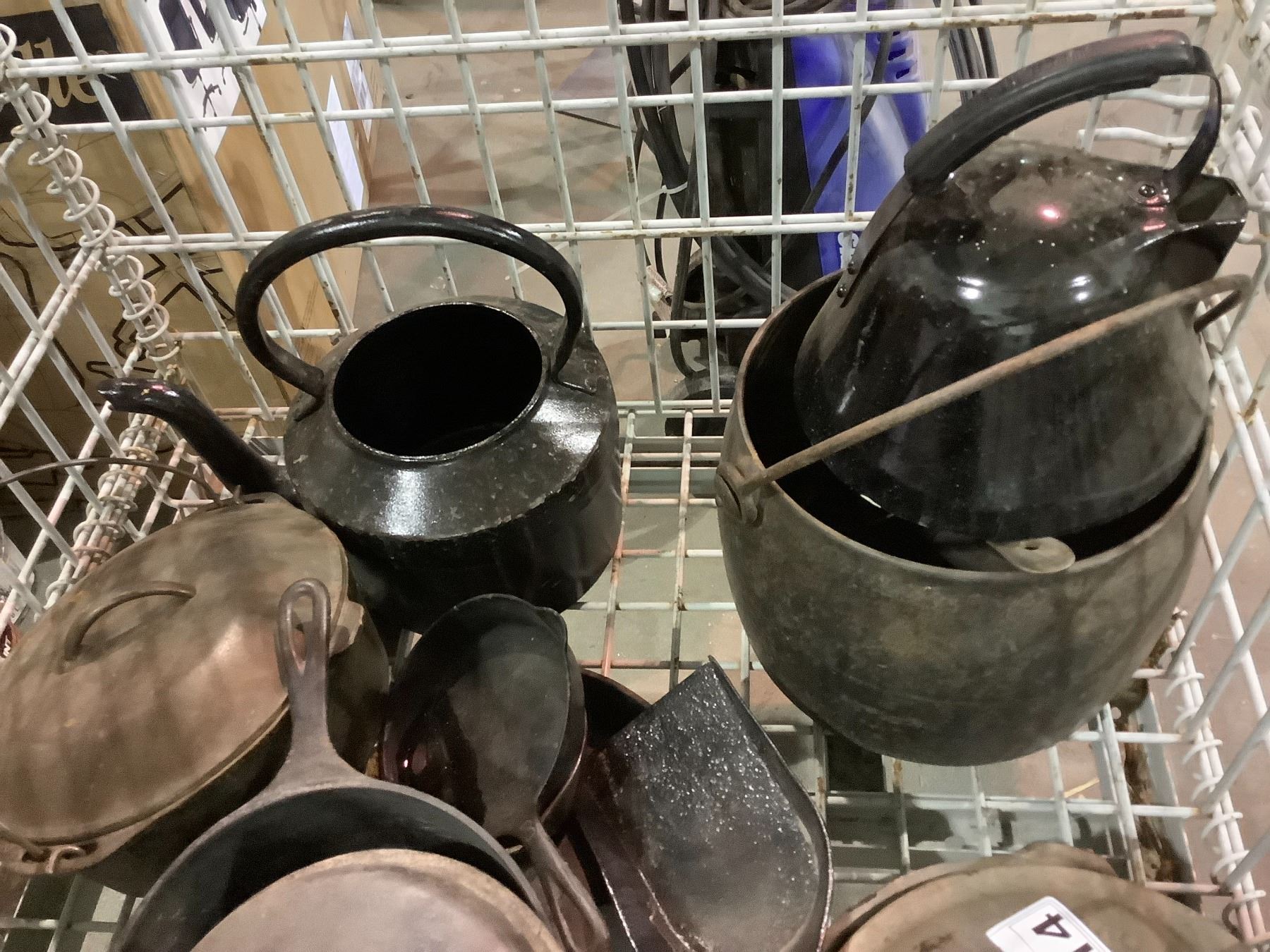 LARGE LOT OF CAST IRON POTS AND KETTLES AND MORE