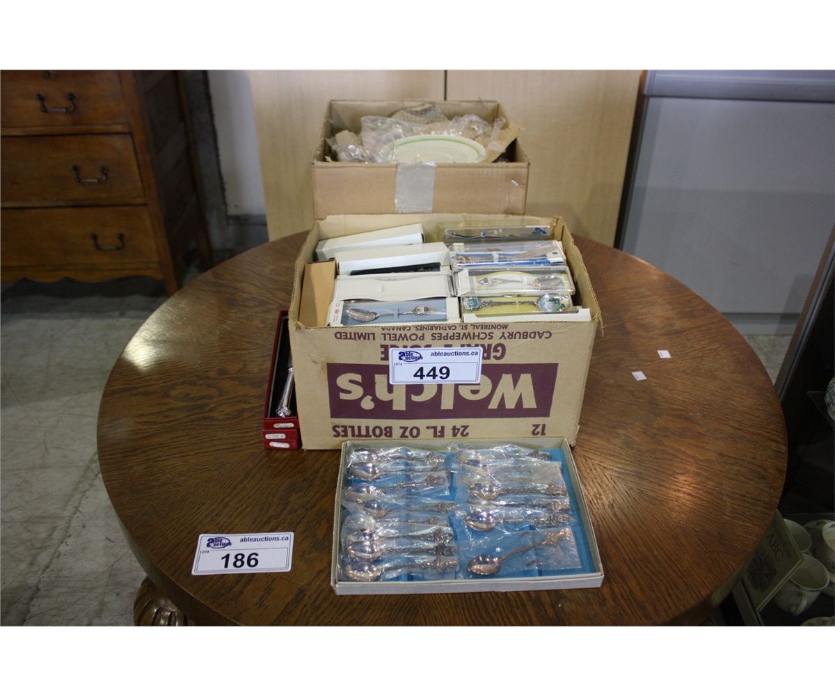 LARGE LOT OF COLLECTORS SPOONS AND ROYAL ALBERT CHINA WEAR