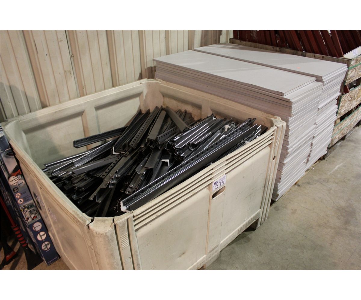 LARGE LOT OF GALVANIZED RACKING SYSTEM WITH WOOD *BIN NO GO*