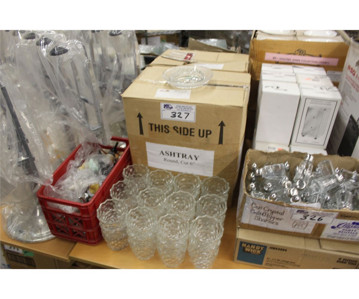 LARGE LOT OF GLASS ASHTRAYS AND CUPS