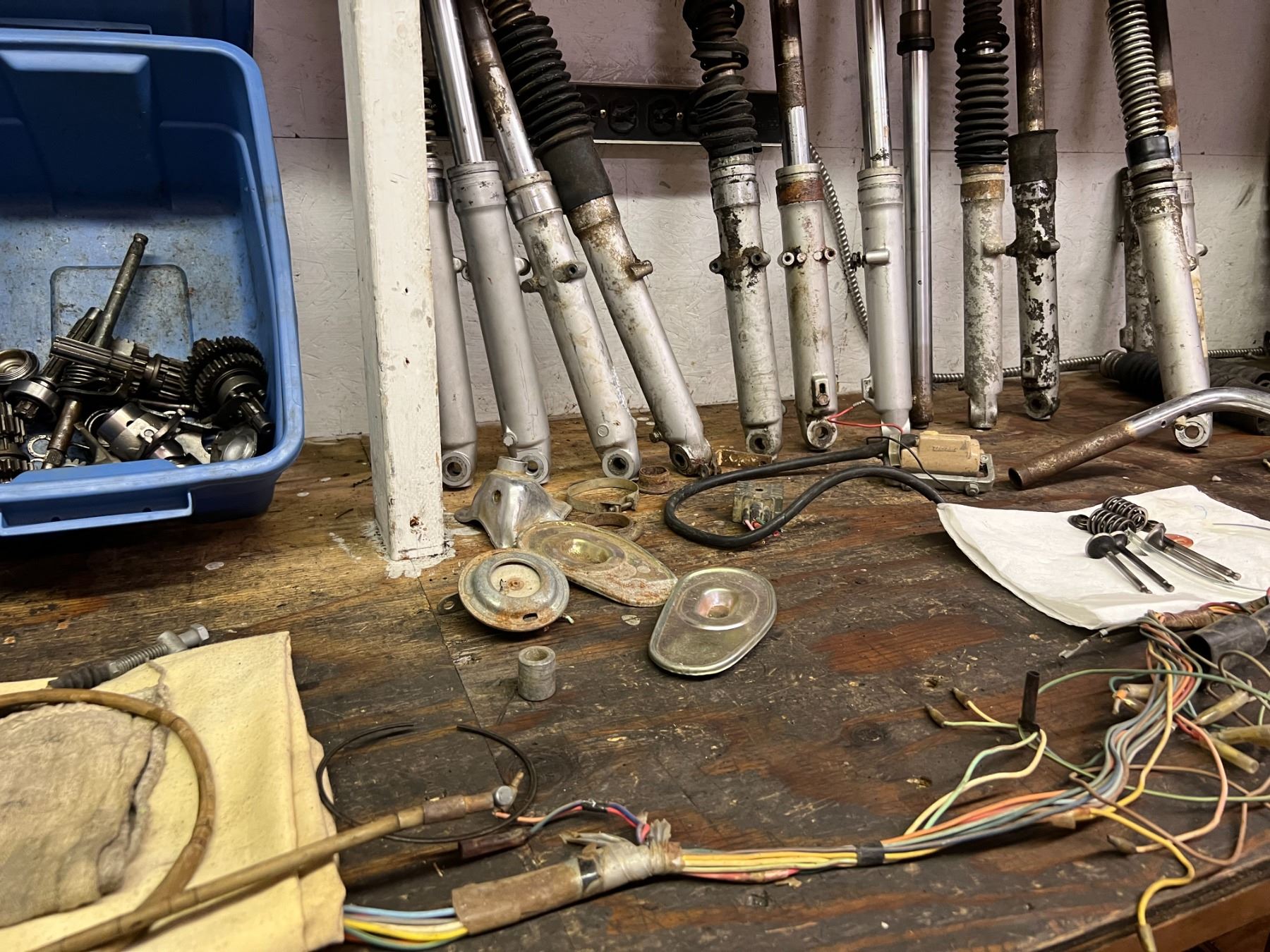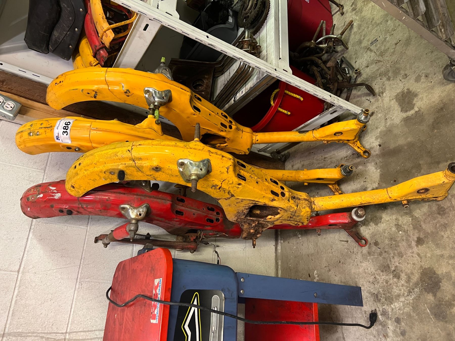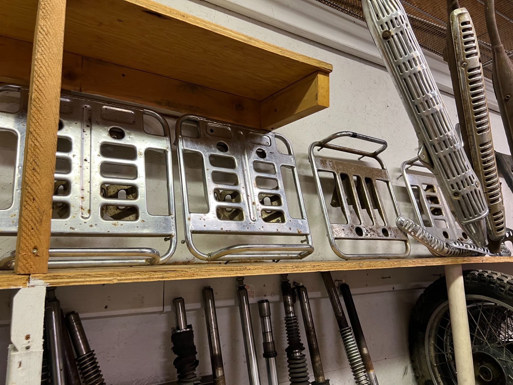 LARGE LOT OF HONDA CT90 PARTS & RESTORATION COMPONENTS (4 FRAMES, GAS TANKS, SHOCKS, WHEELS, RACKS,