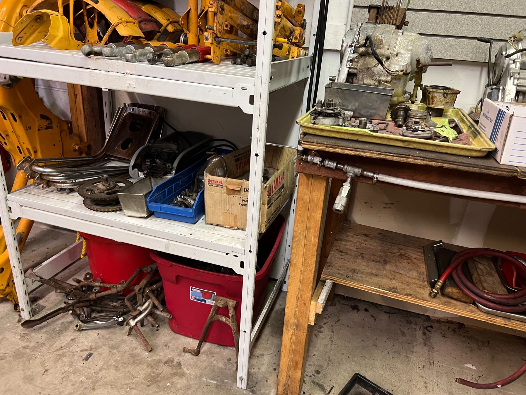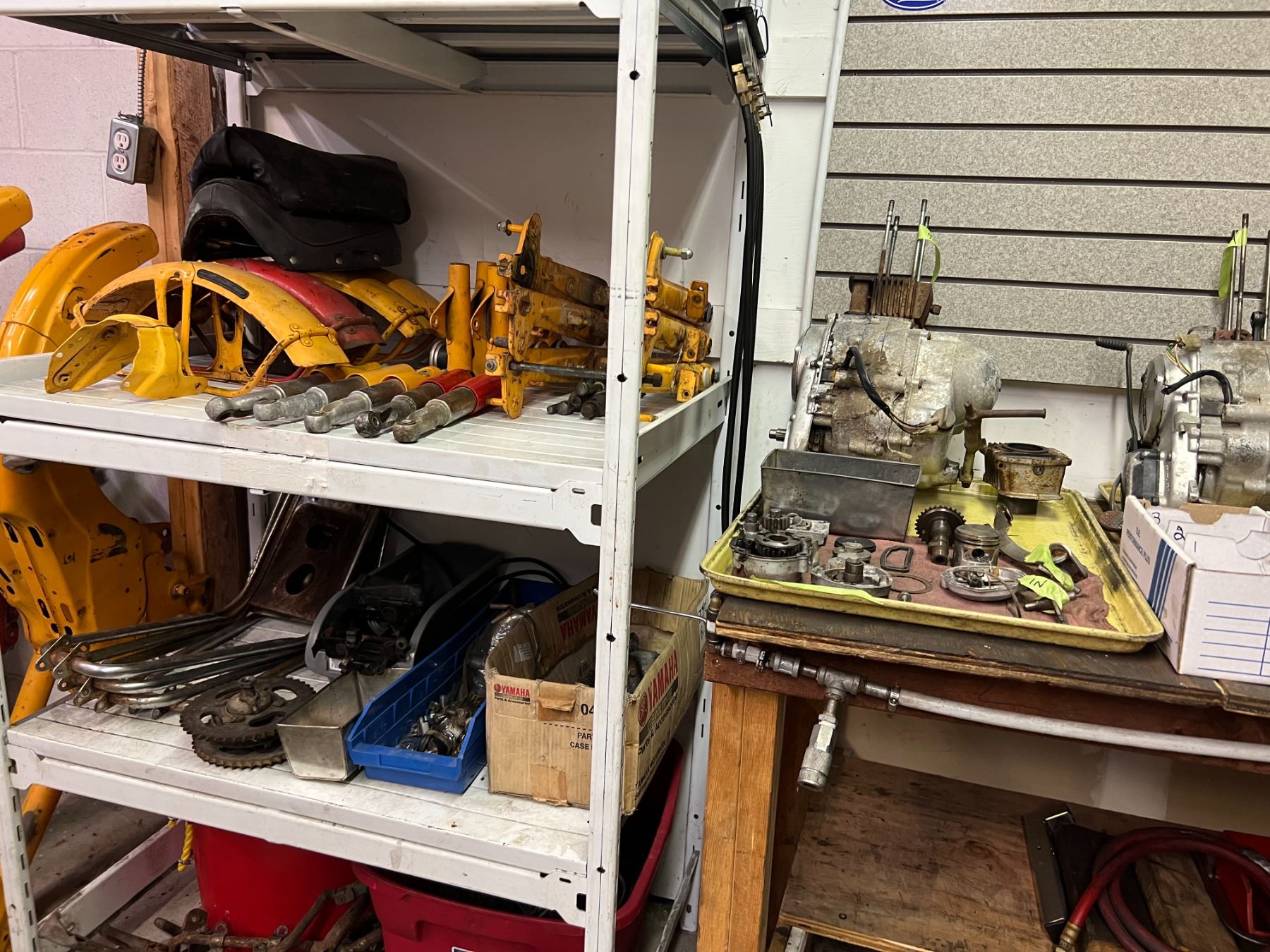 LARGE LOT OF HONDA CT90 PARTS & RESTORATION COMPONENTS (4 FRAMES, GAS TANKS, SHOCKS, WHEELS, RACKS, MUFFLERS, MOTORS & ENGINE COMPONENTS ETC.)