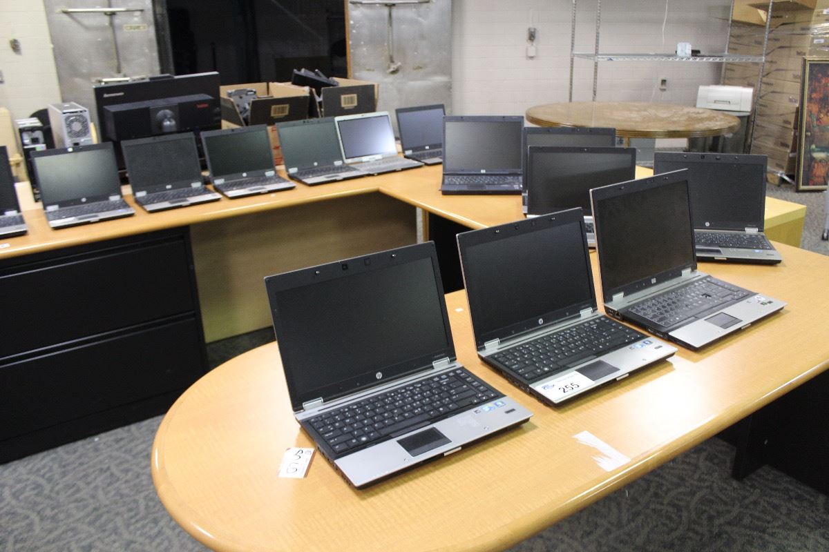 LARGE LOT OF HP NOTEBOOK COMPUTERS AND MISC. MONITORS NO HARD DRIVES NO POWER SUPPLIES