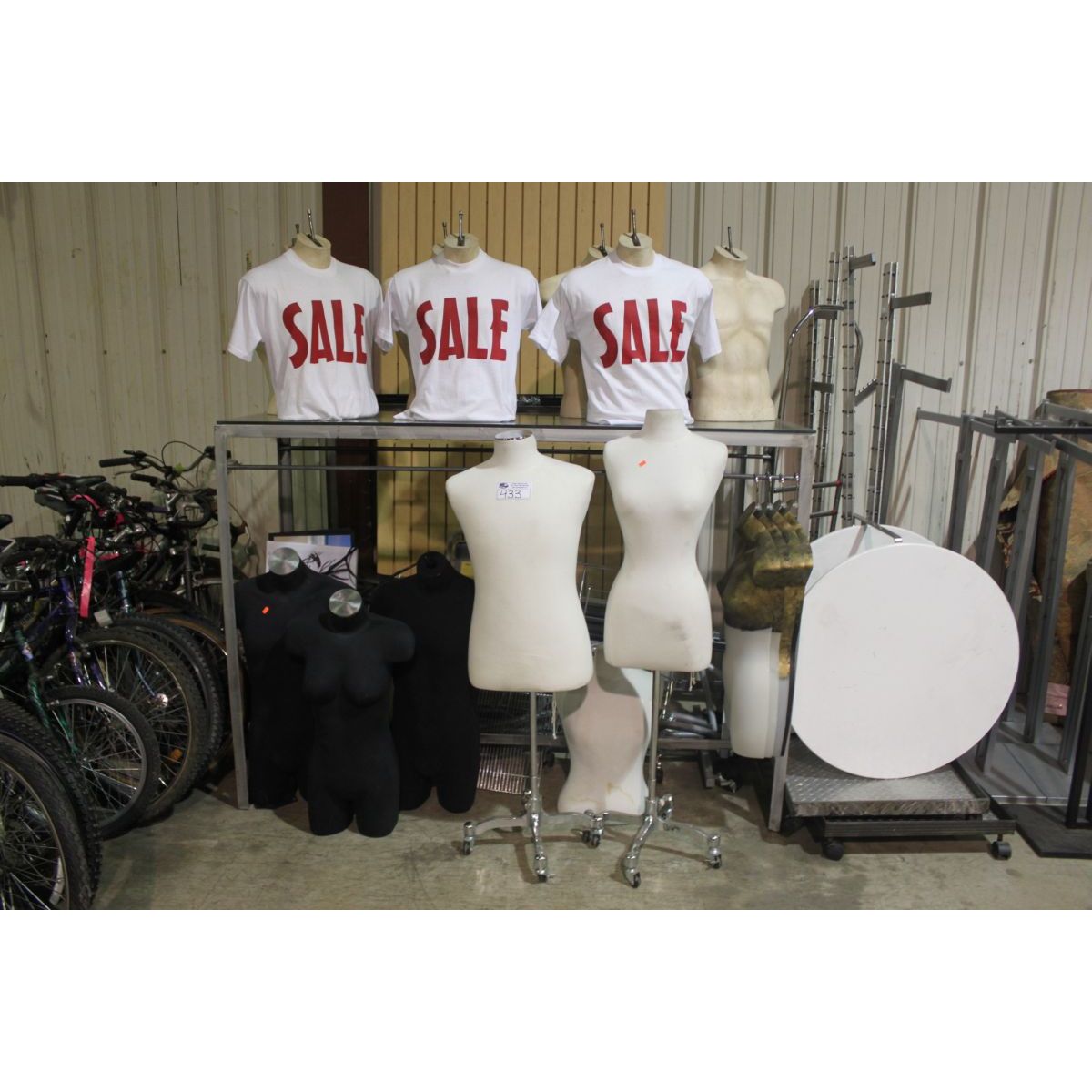LARGE LOT OF MANIQUINS AND DISPLAY RACKING