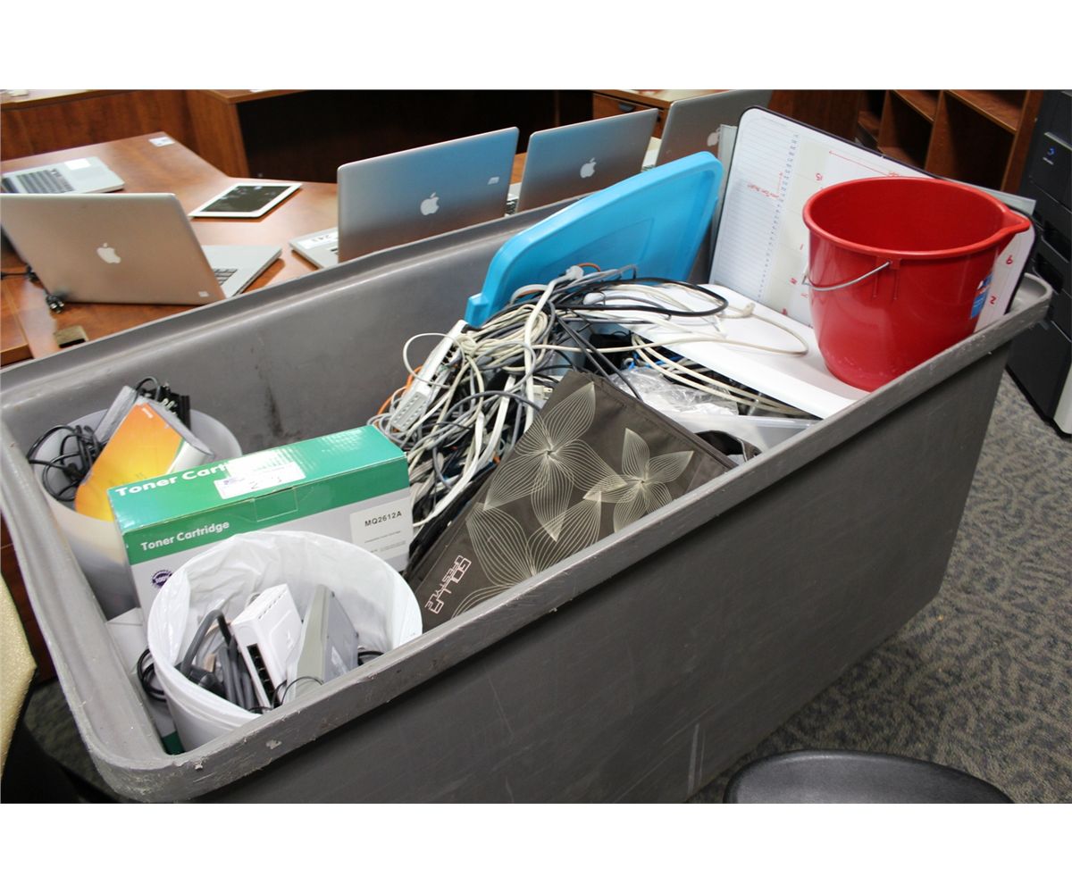 LARGE LOT OF MISC. ELECTRONICS INCLUDING CABLES, SOFTWARE, ROUTERS, AND MORE