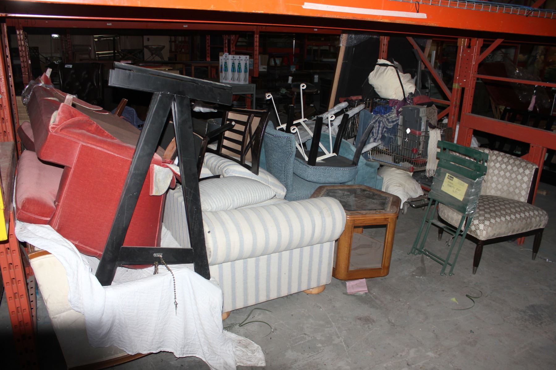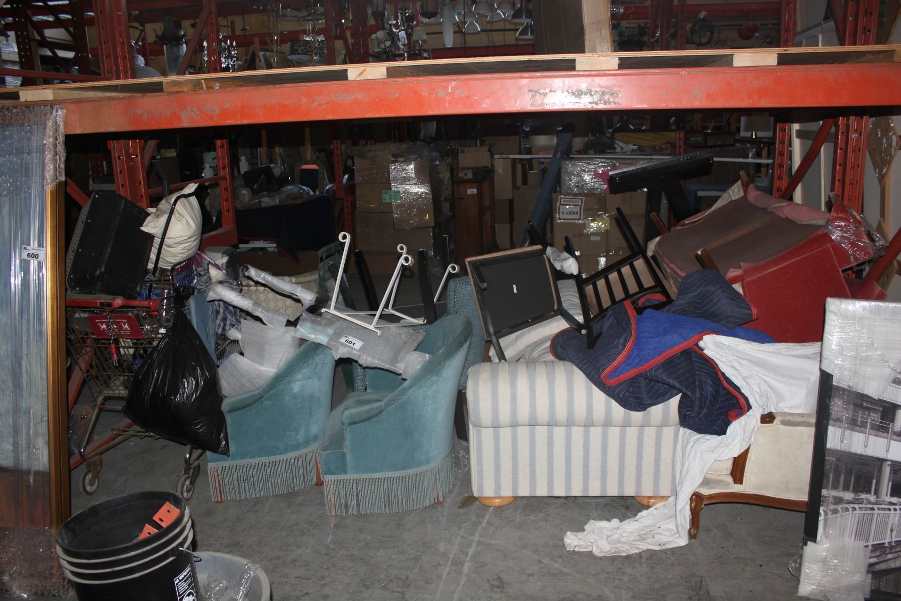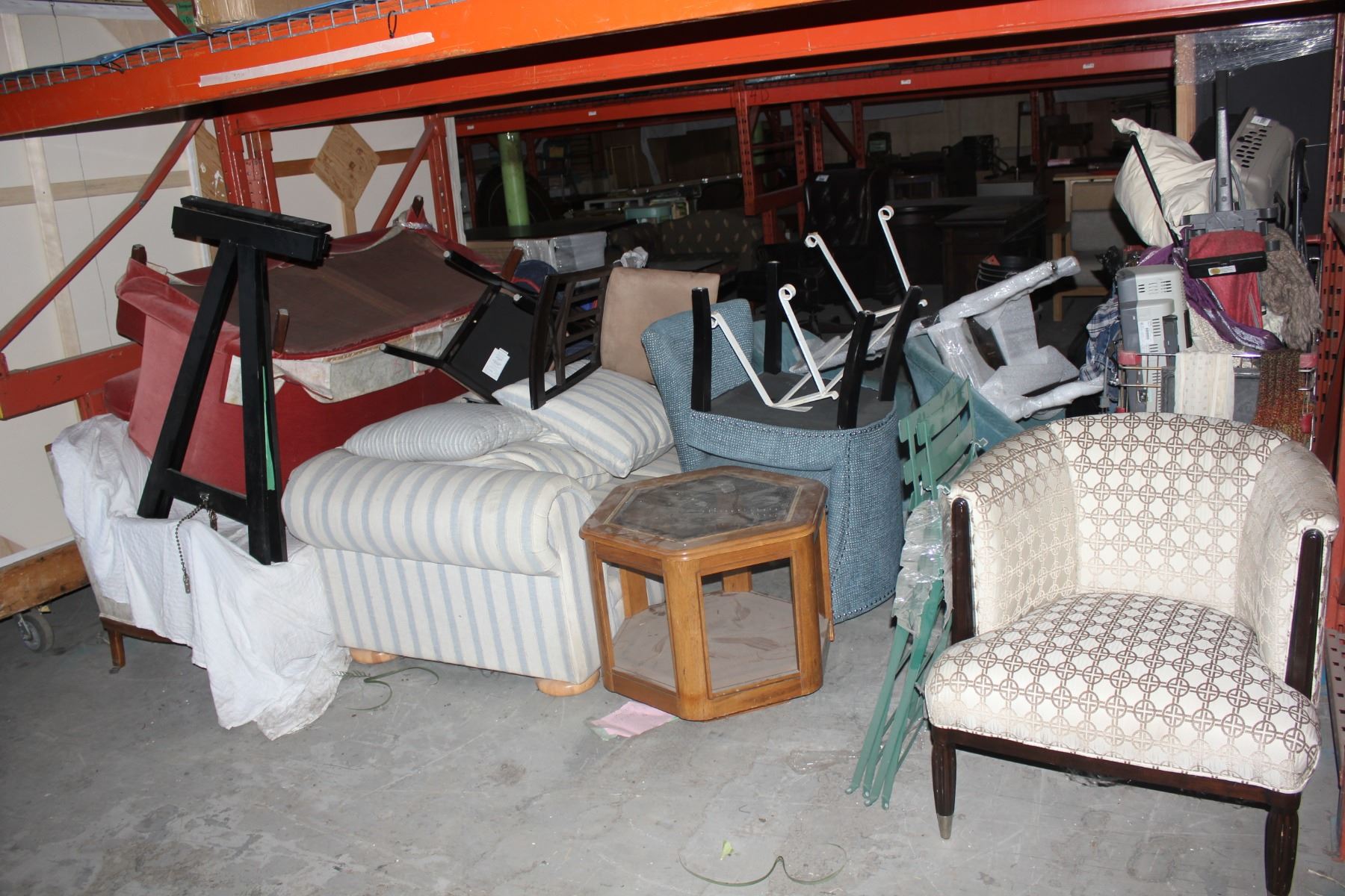 LARGE LOT OF MISC FURNITURE UNDER RACKING