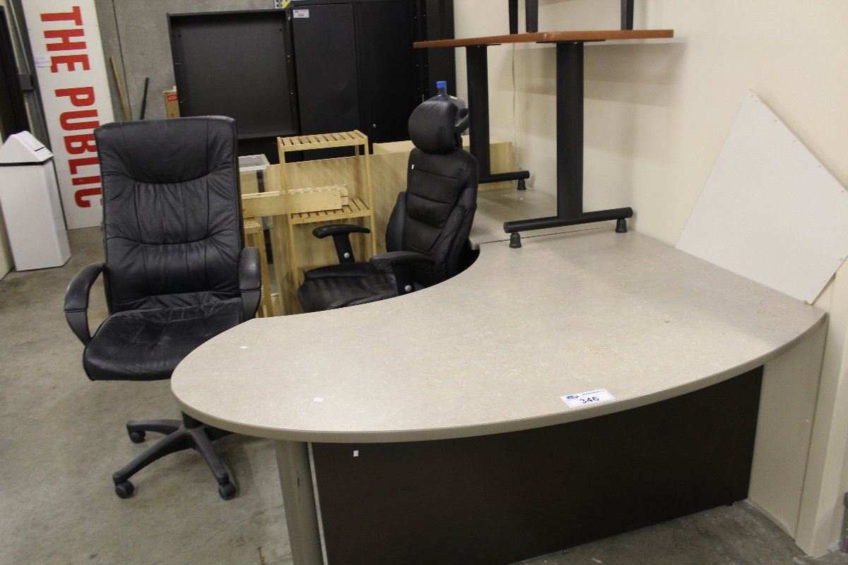 LARGE LOT OF MISC. OFFICE FURNITURE INC. DESK, TABLES, CHAIRS AND STORAGE CABINETS