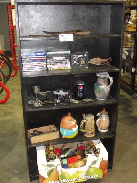 LARGE LOT OF MISC ON SHELF, INCLUDING SHELF