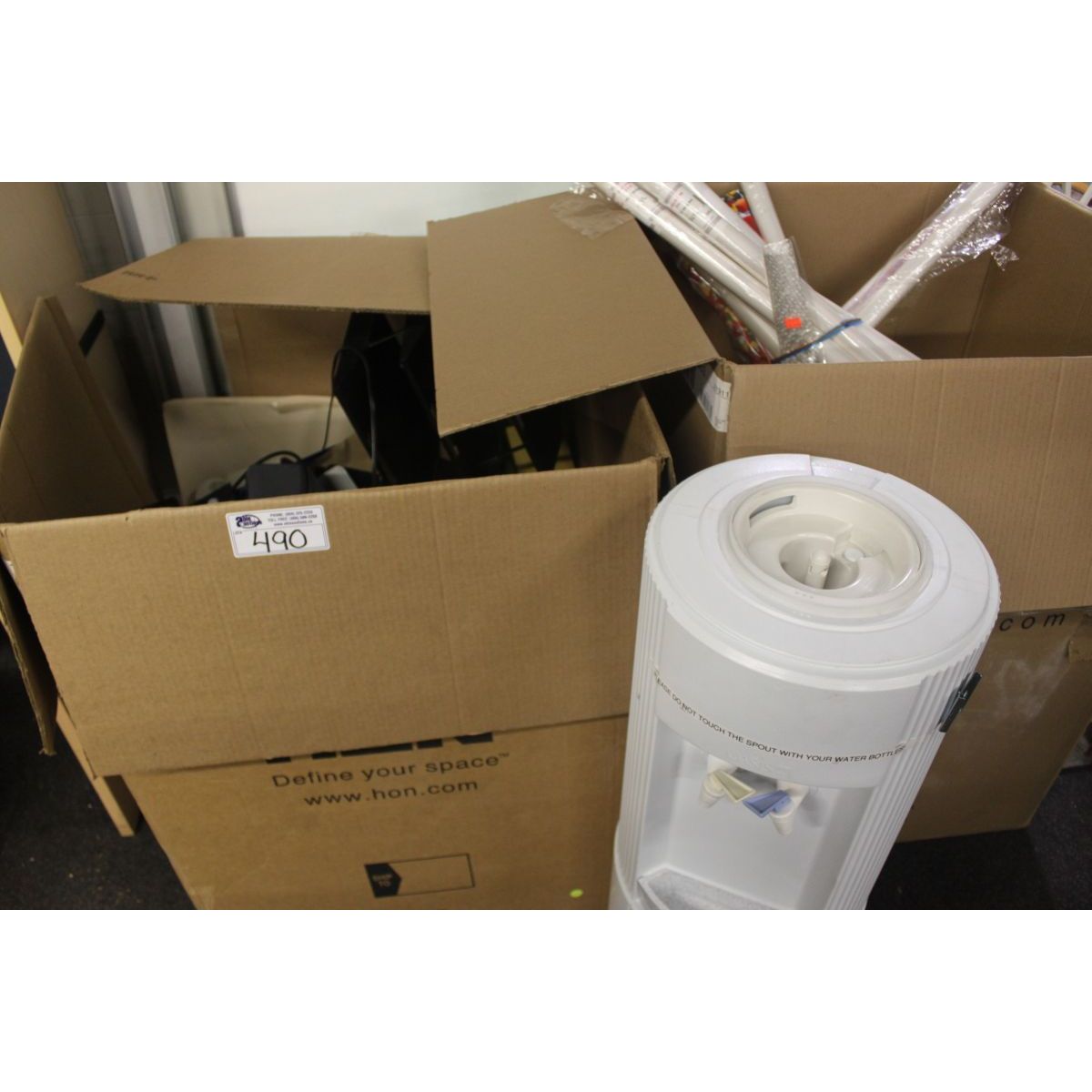 LARGE LOT OF OFFICE STATIONERY AND A WATER COOLER