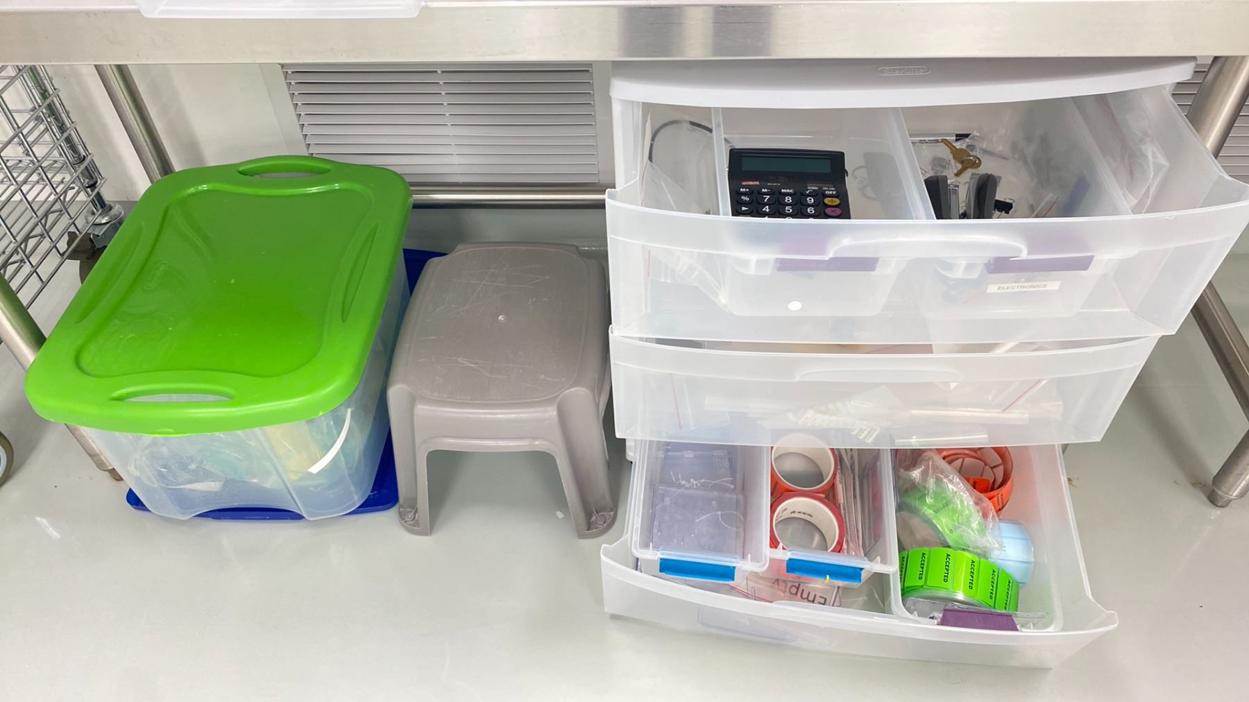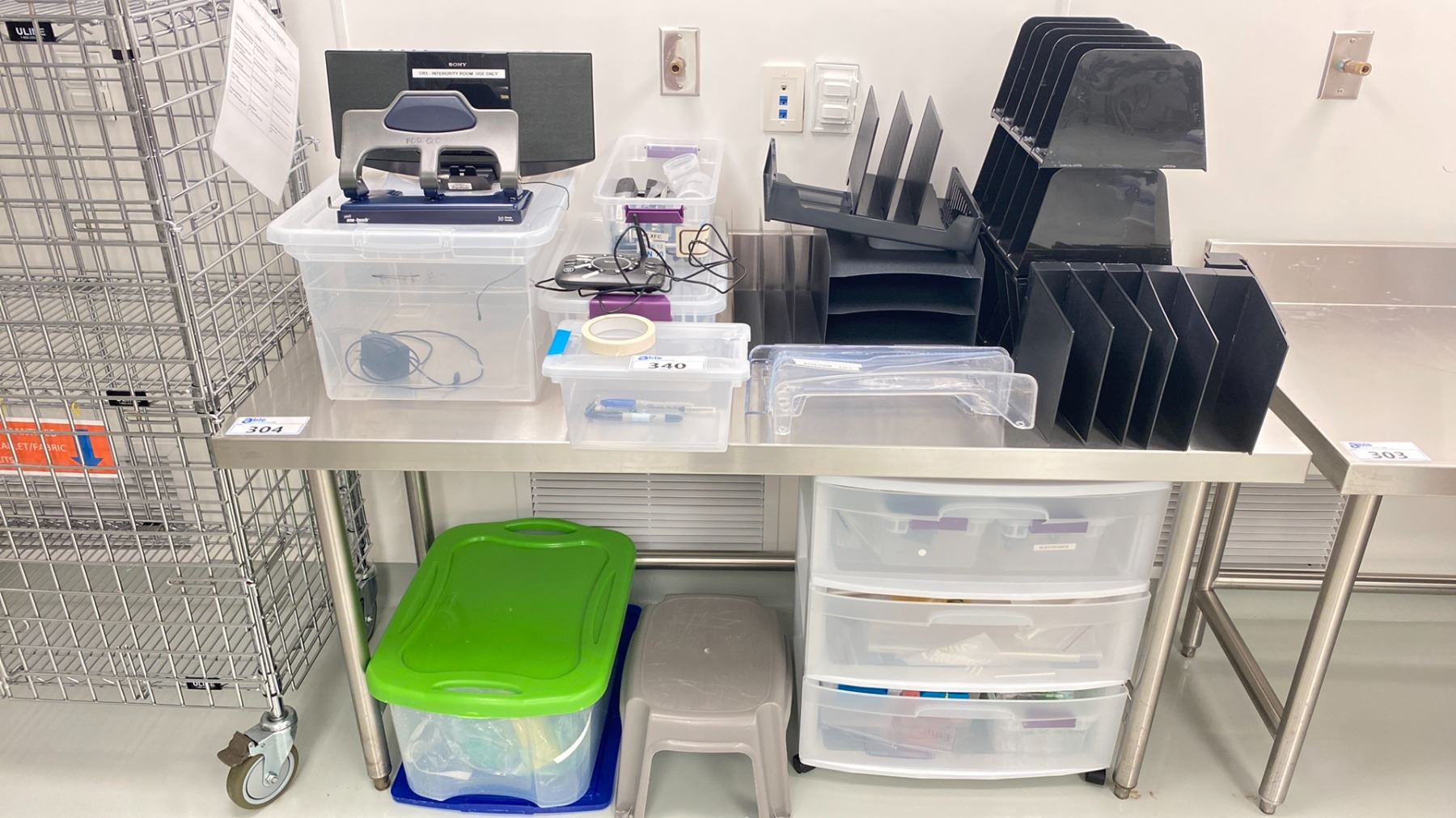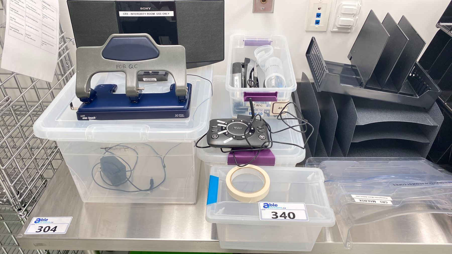 LARGE LOT OF OFFICE SUPPLIES; SEVERAL FILE ORGANIZERS, SONY SPEAKER DOCK, WULOO INTERCOM, LABLES