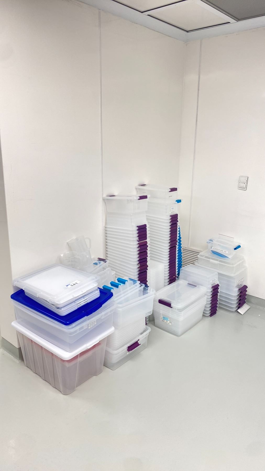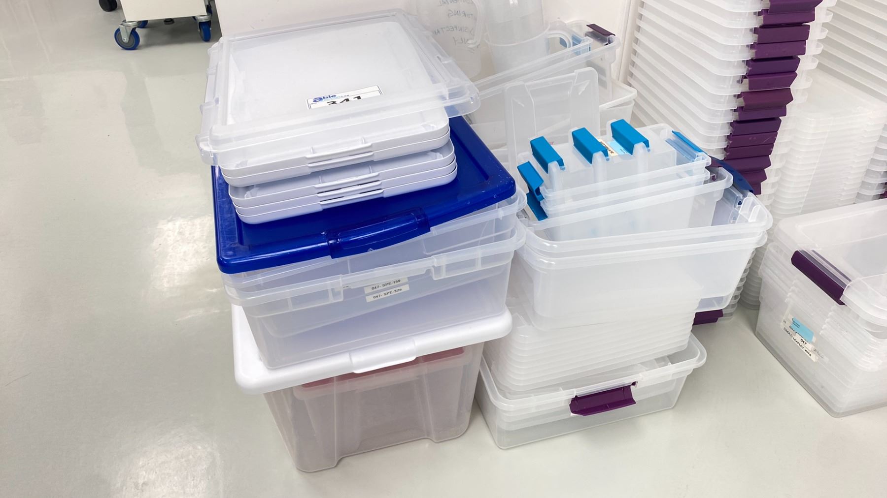 LARGE LOT OF PLASTIC STORAGE TOTES