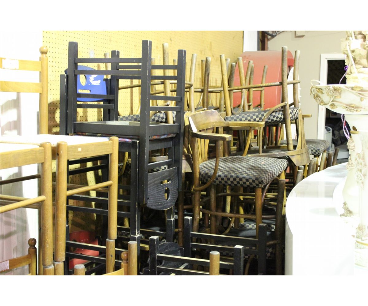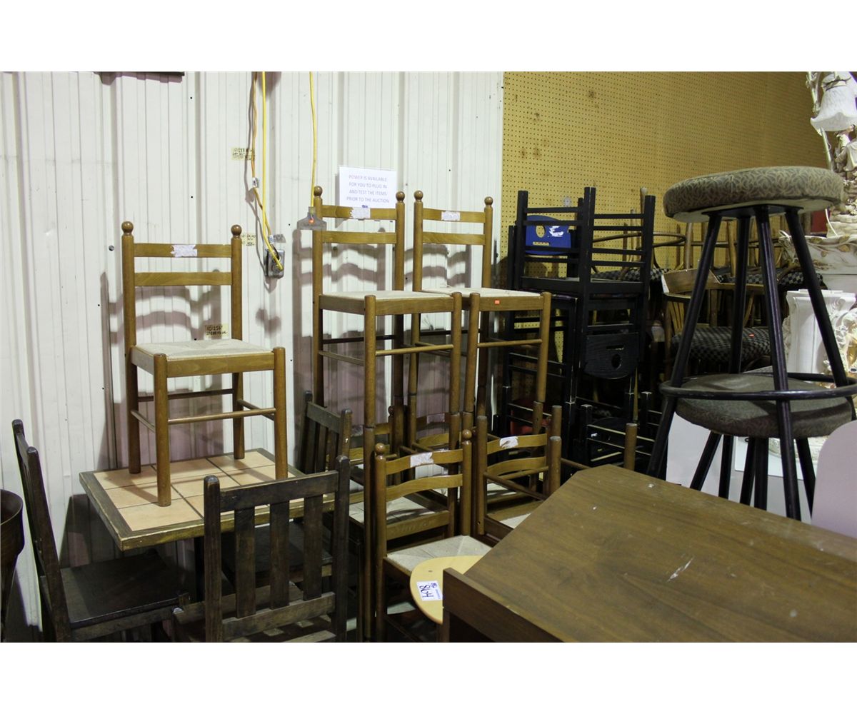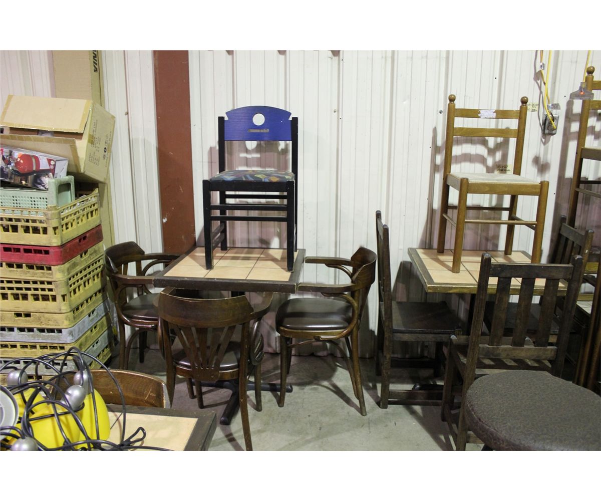 LARGE LOT OF RESTAURANT STOOLS, CHAIRS AND TABLES