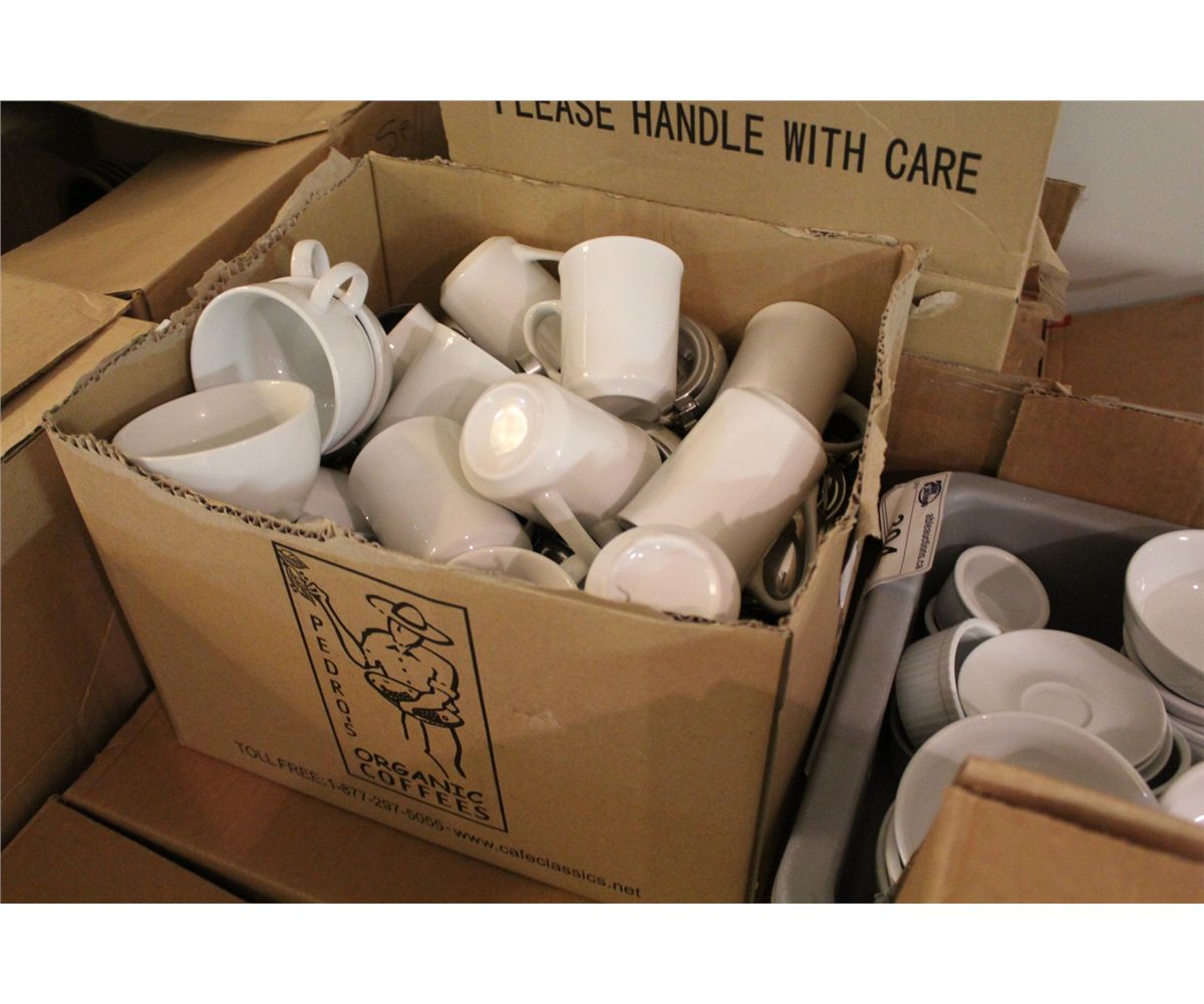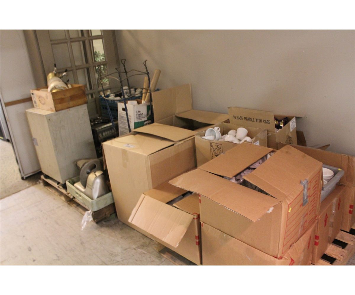 LARGE LOT OF RESTAURANT SUPPLIES INCLUDING GLASSWARE, CUTLERY, AND MISC. EQUIPMENT