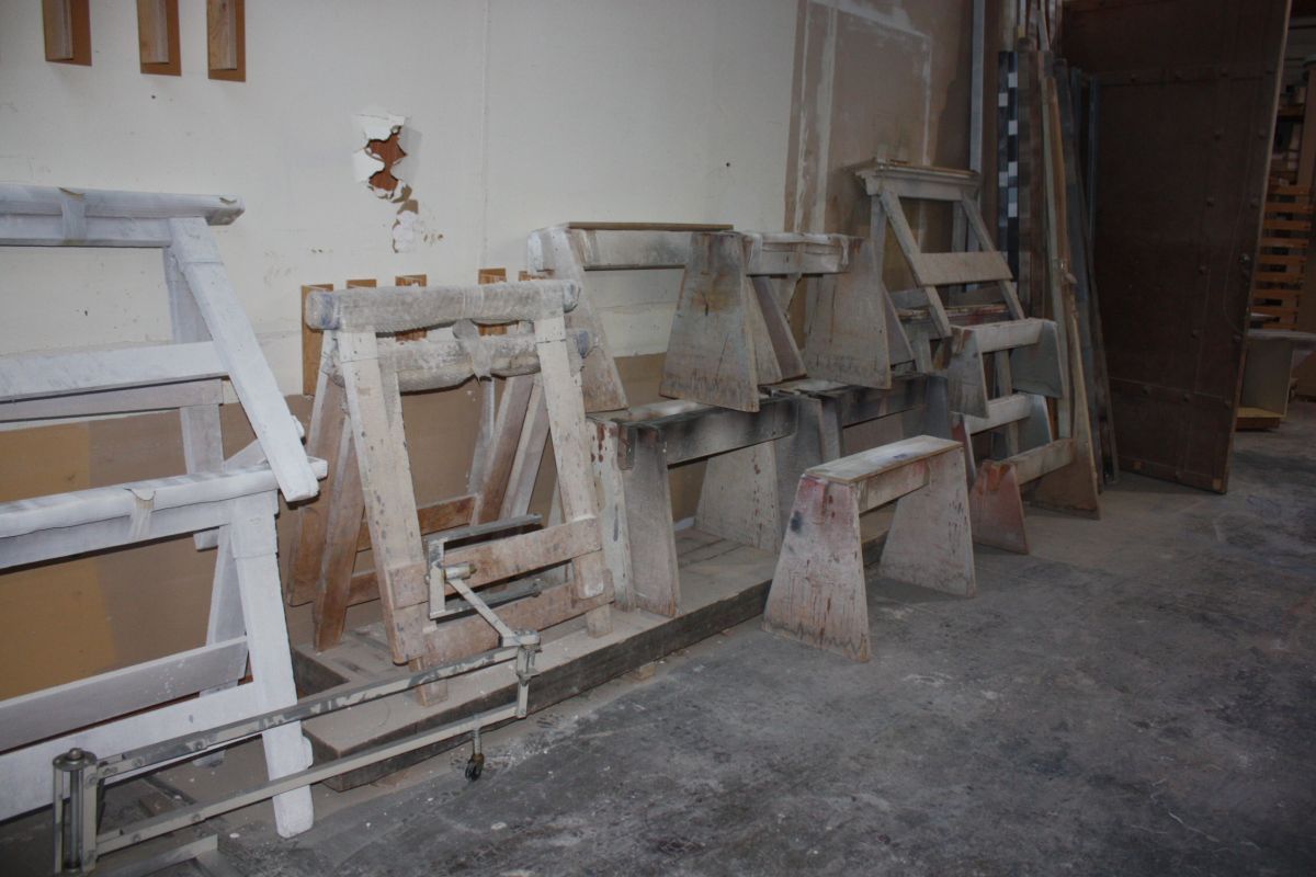 LARGE LOT OF SAW HORSES AND PAINT DRYING RACKS