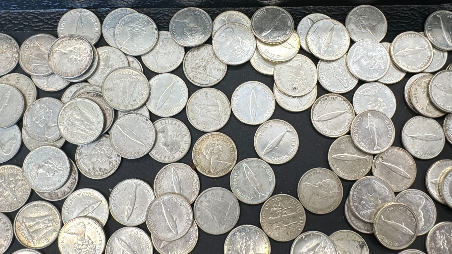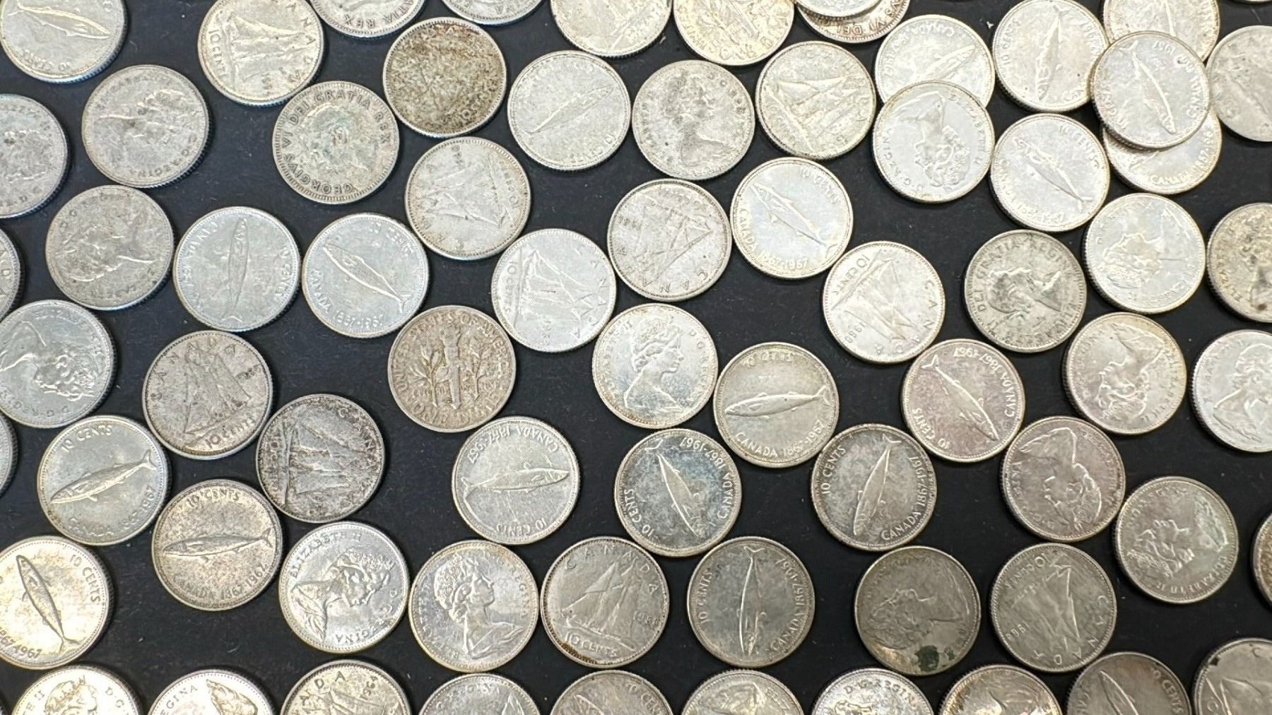 LARGE LOT OF SILVER CANADIAN DIMES MOSTLY 1967