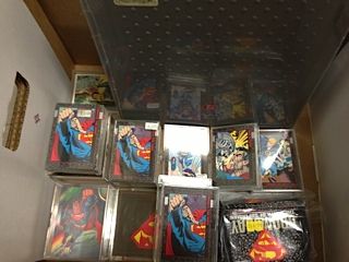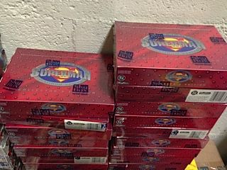 LARGE LOT OF SUPERMAN TRADING CARDS INCLUDING 31 MOSTLY FACTORY SEALED CASES PLUS APPROX 47 FACTORY SEALED BOXES AND MISC CARD SETS