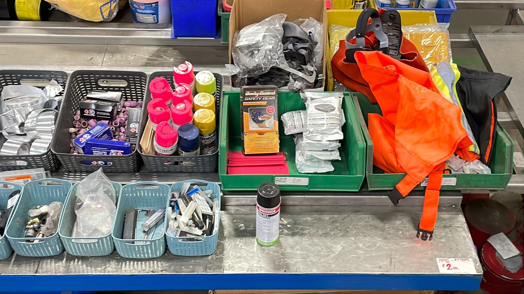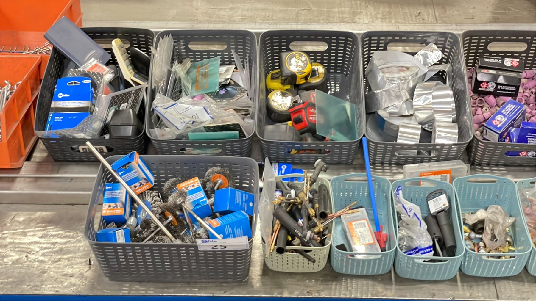 LARGE LOT OF WELDING AND RETAIL SUPPLIES; VAPOR CARTRIDGES, SAFETY JACKETS, ASSORTED FITTINGS, MEASURING TAPES, BRUSHES, WELDING CAPS AND MUCH MORE