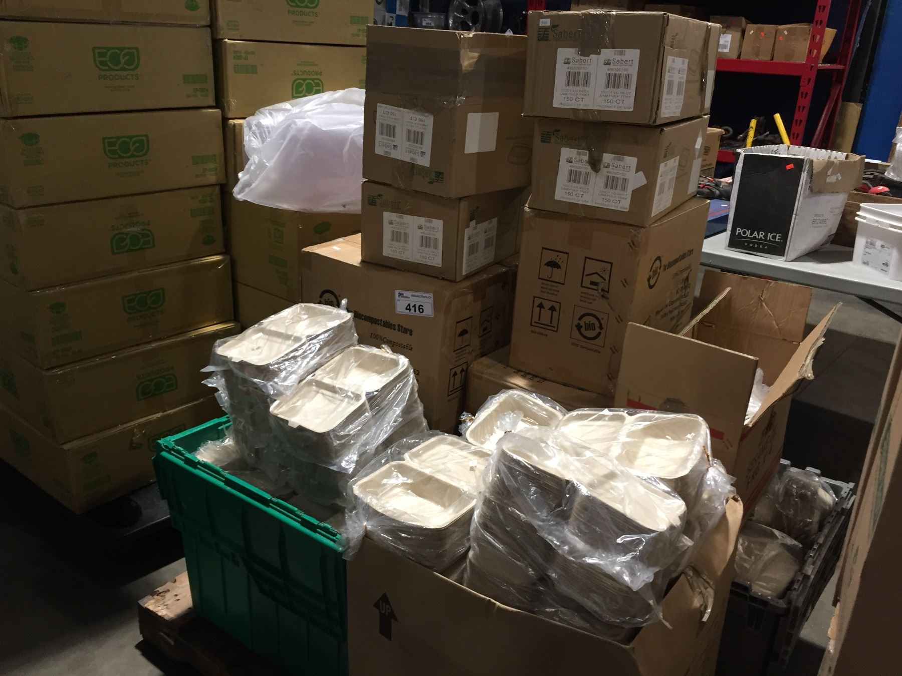 LARGE LOT OF WHEAT STRAW CLAMSHELLS (7" X 5" X 2") X 7 CASES - (500 PCS PER CASE), SABERT PULP TRAY X 3 CASES (150 CT PER CASE) ECT.
