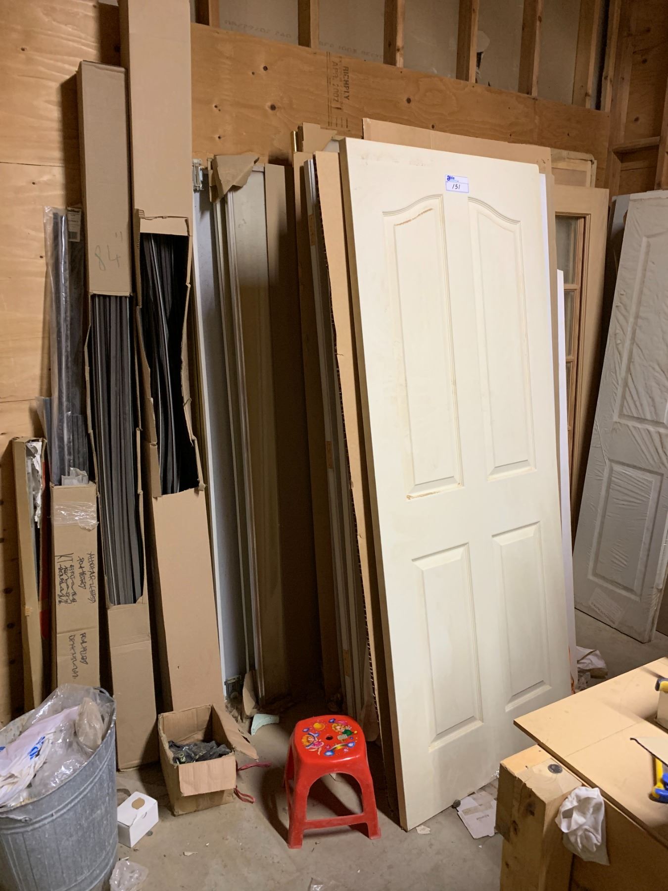 LARGE LOT OF WOODEN DOORS, DOOR HARDWARE & DOOR ACCESSORIES