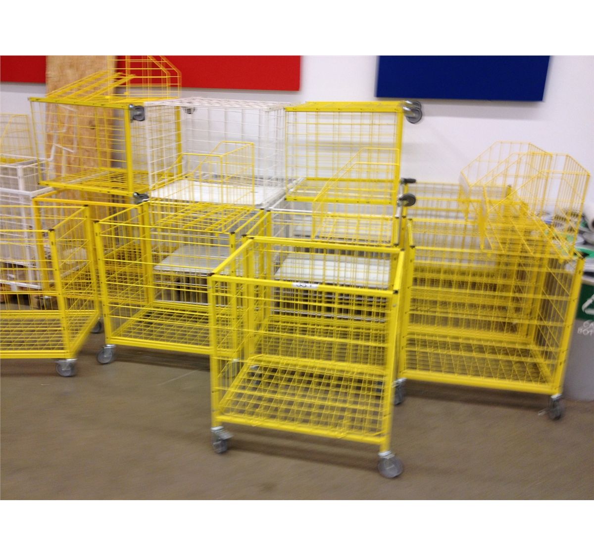 LARGE LOT OF YELLOW & WHITE ROLLING BINS