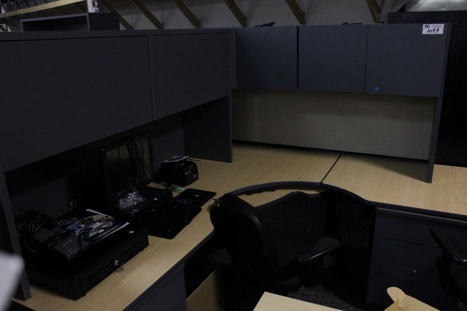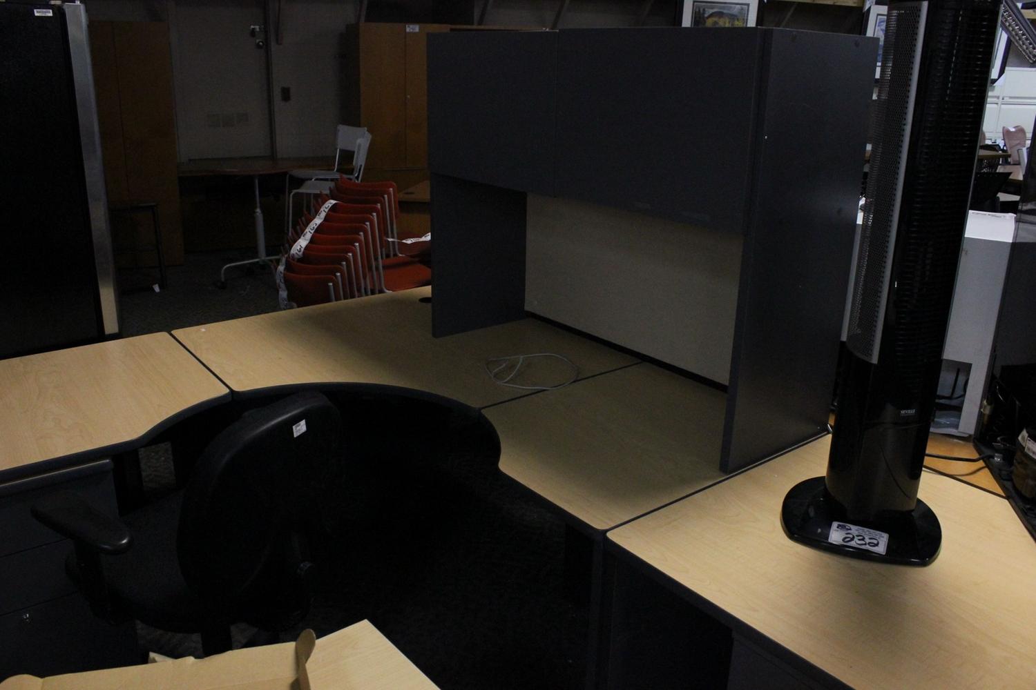LARGE MAPLE  2 PERSON WORKSTATION W/3 HUTCHES & 3 PEDESTALS