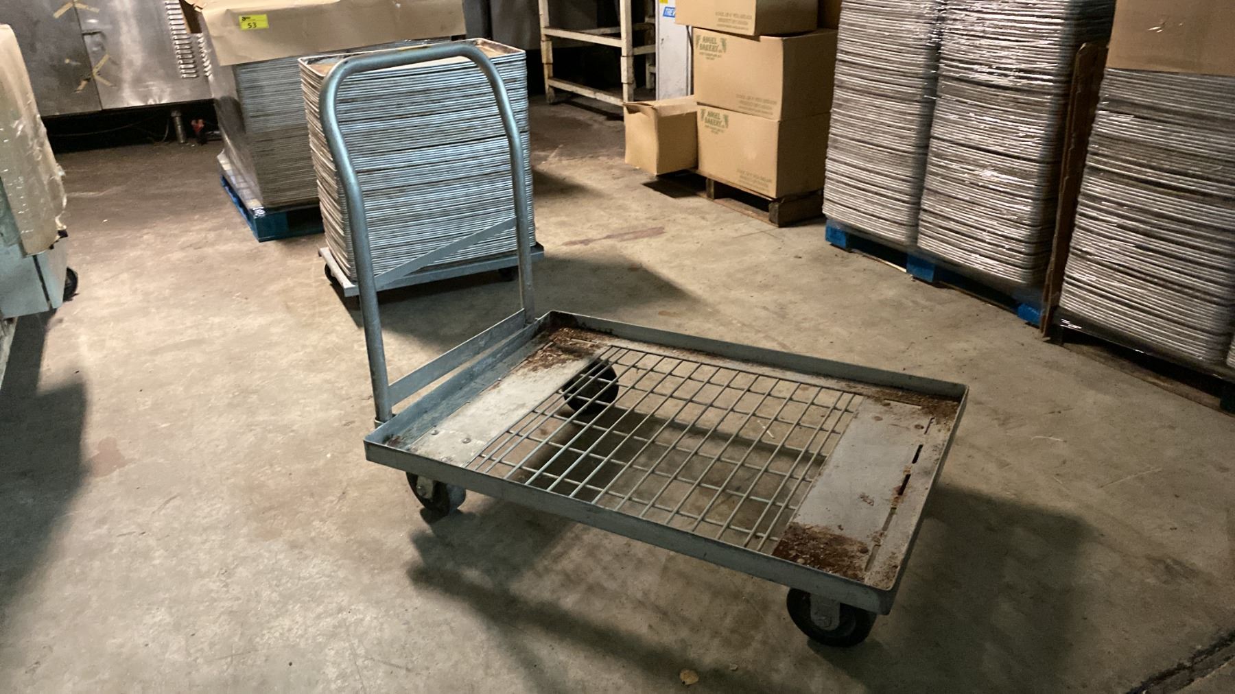 LARGE METAL COMMERCIAL MOBILE MESH DECK CART