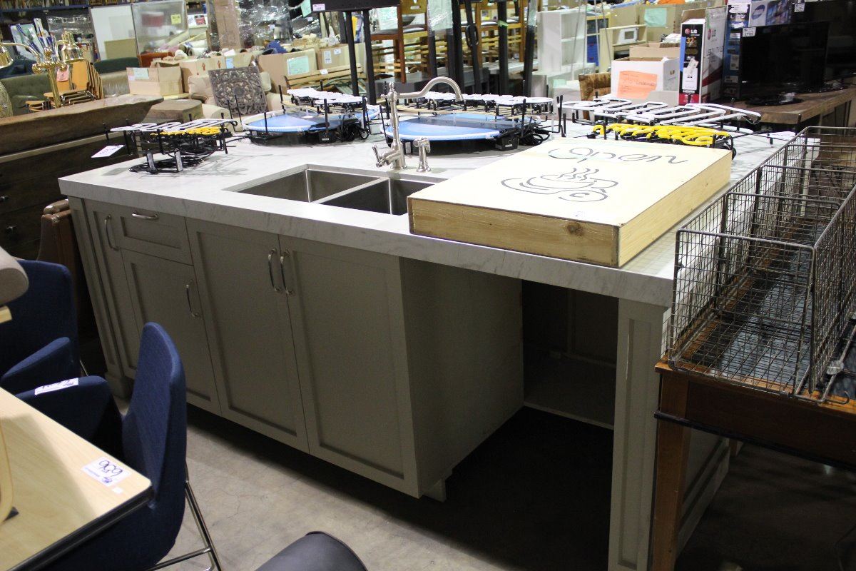 LARGE MOBILE FAUX GRANITE KITCHEN ISLAND WITH SINK