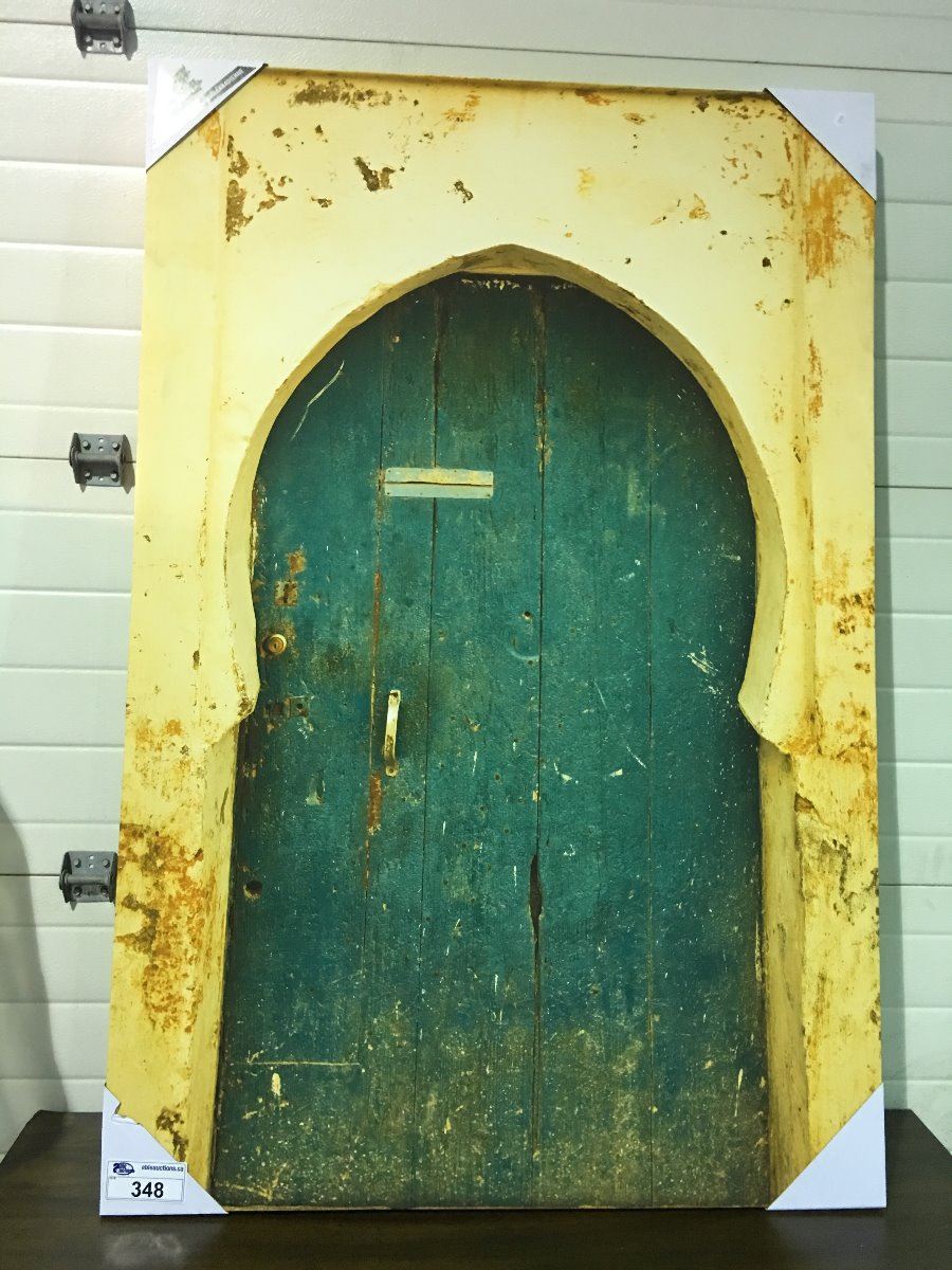 LARGE OIL ON CANVAS PRINT "RUSTIC GREEN DOOR" 3' X 5'