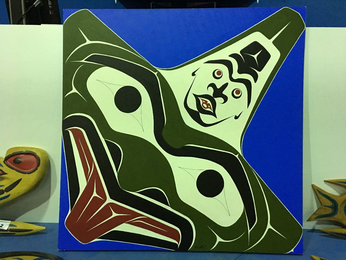 LARGE ORIGINAL OIL ON CANVAS PAINTING BY FIRST NATION ARTIST S. SAUNDERS 4'X 4'