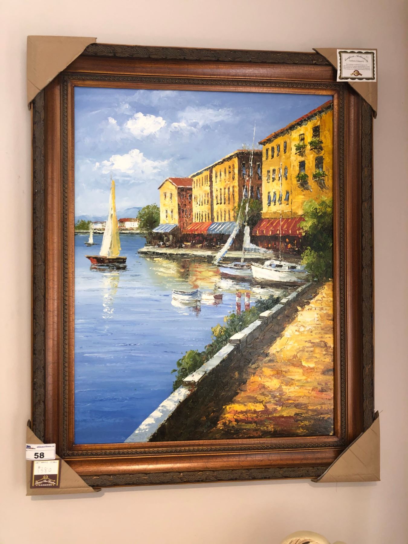LARGE PAINTED BOARDWALK ARTWORK WITH WOODEN FRAME AND CERTIFICATE OF AUTHENTICITY. RETAIL $1,380.00