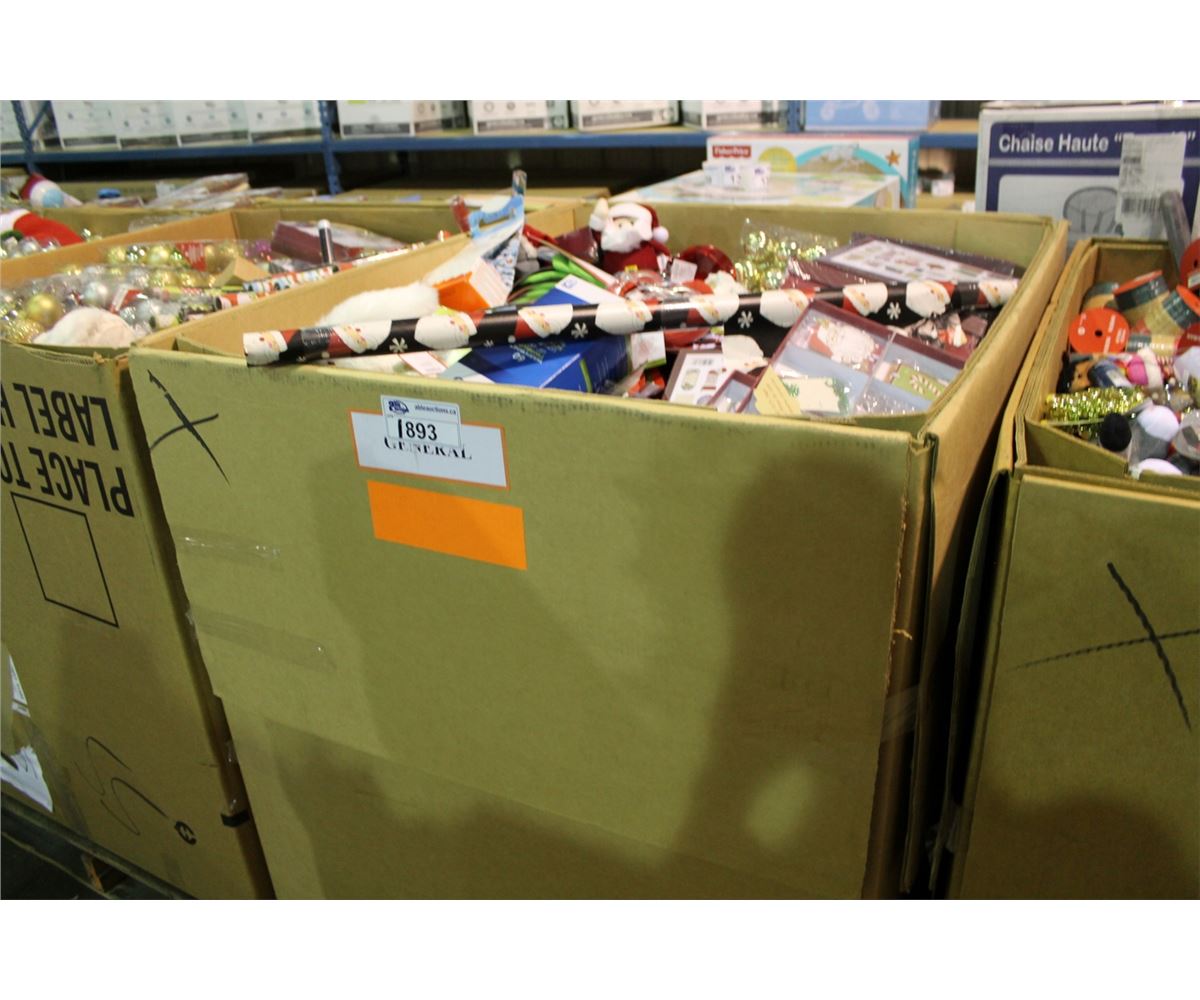LARGE PALLET LOT OF ASSORTED CHRISTMAS DECORATIONS