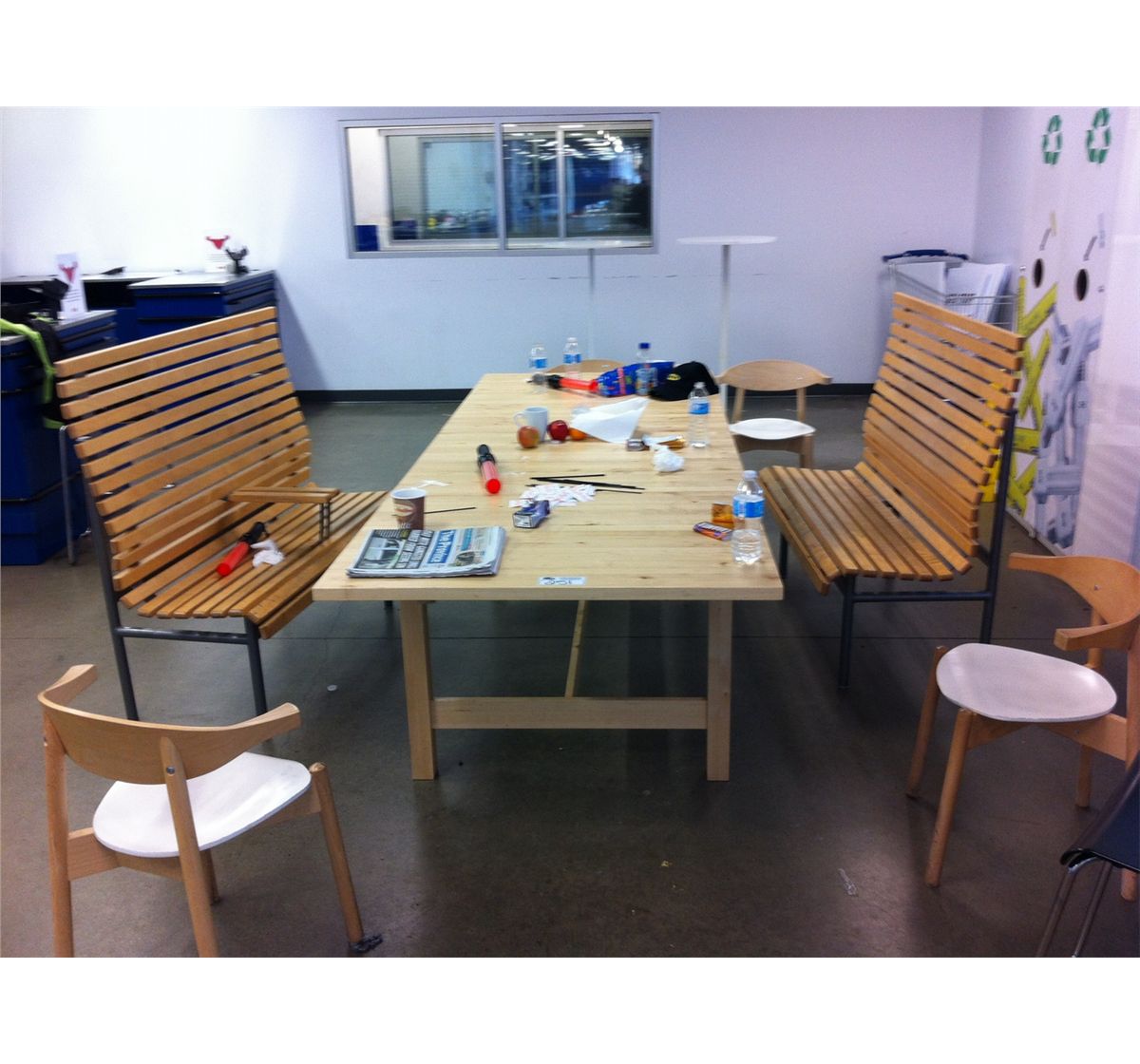 LARGE PINE TABLE & 4 BISTRO CHAIRS