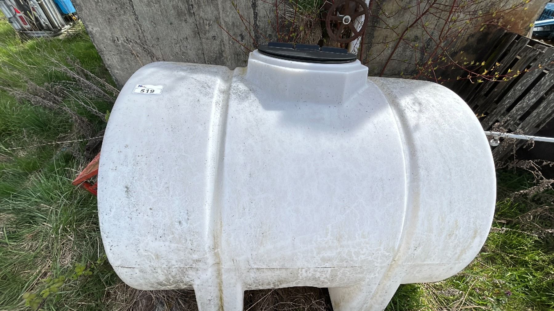 LARGE PLASTIC TANK APPROX 250 GALLON 48"DIAMETER X 62" LONG WITH SMALL TANK MEASURING 16â€DIAMETER X32†ON WHEELS