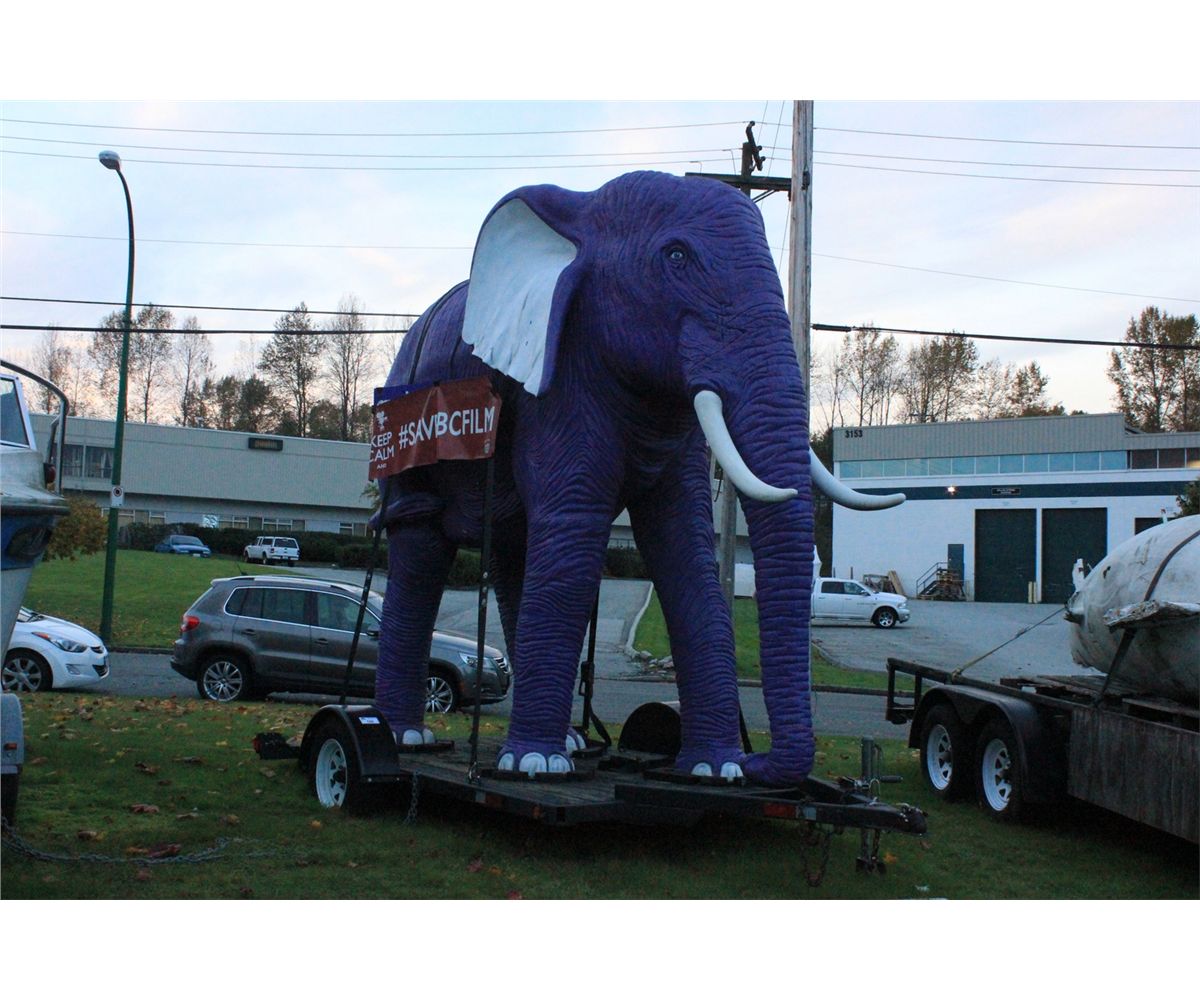 LARGE PURPLE ELEPHANT ON TRAILER (TRAILER NOT INCLUDED)