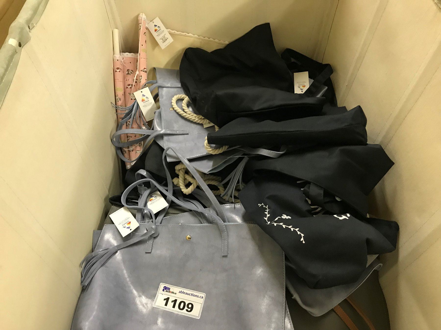 LARGE QUANTITY OF ASSORTED BAGS, PURSES AND MORE, BIN NOT INCLUDED