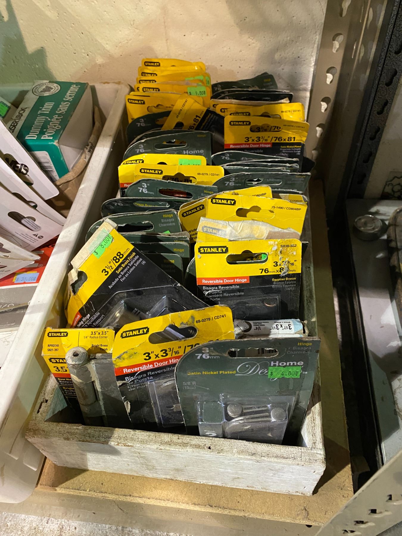 LARGE QUANTITY OF NEW IN PACKAGING DOOR HINGES & RELATED ITEMS