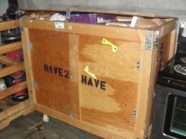 LARGE ROLLING WOODEN STORAGE CRATE FILLED WITH BELGIUM CHOCOLATE BODY AND FACE PAINT