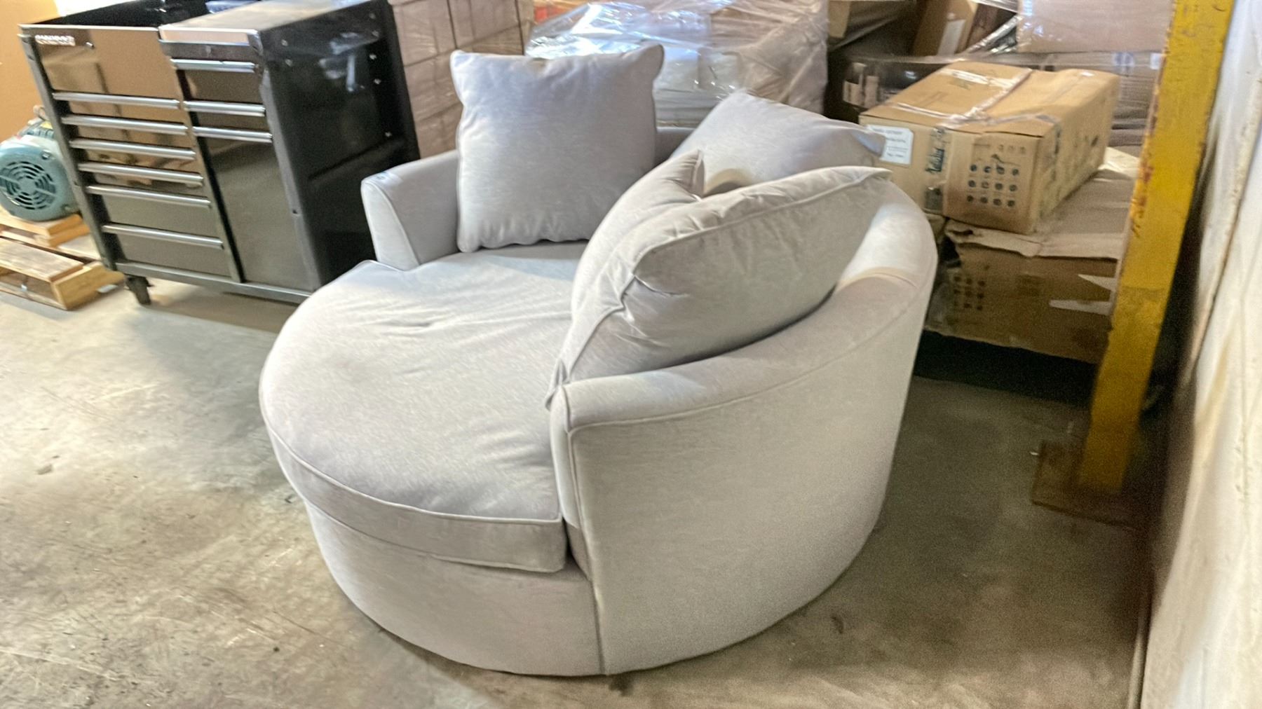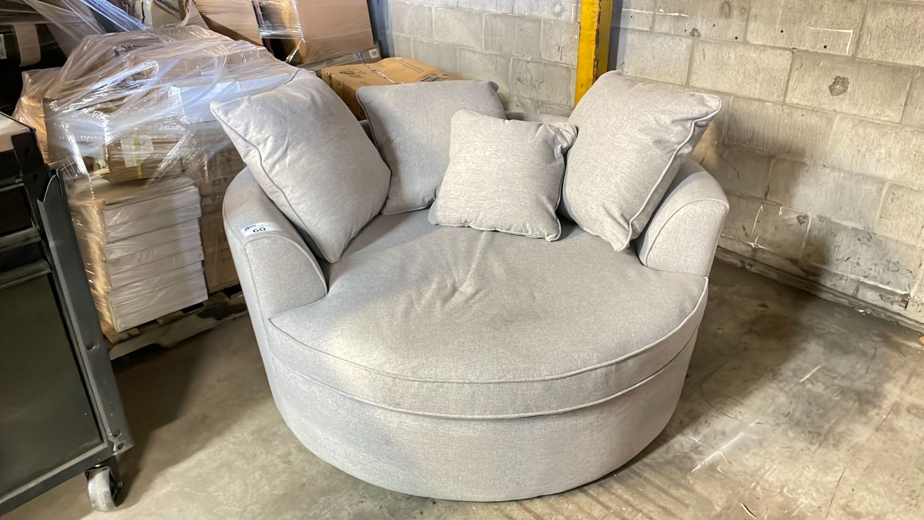 LARGE ROUND FABRIC SOFA WITH THROW CUSHIONS 60" X 26"
