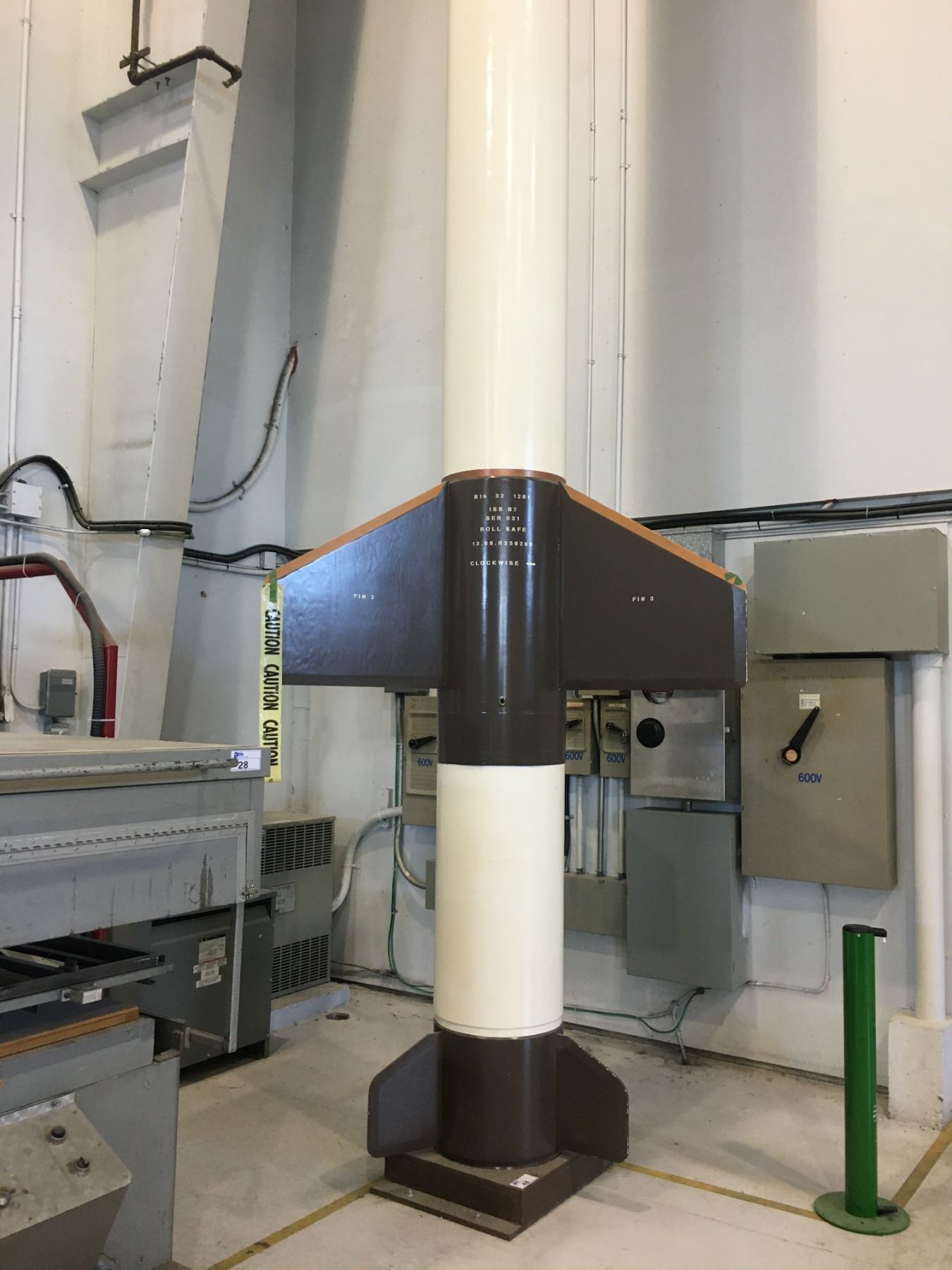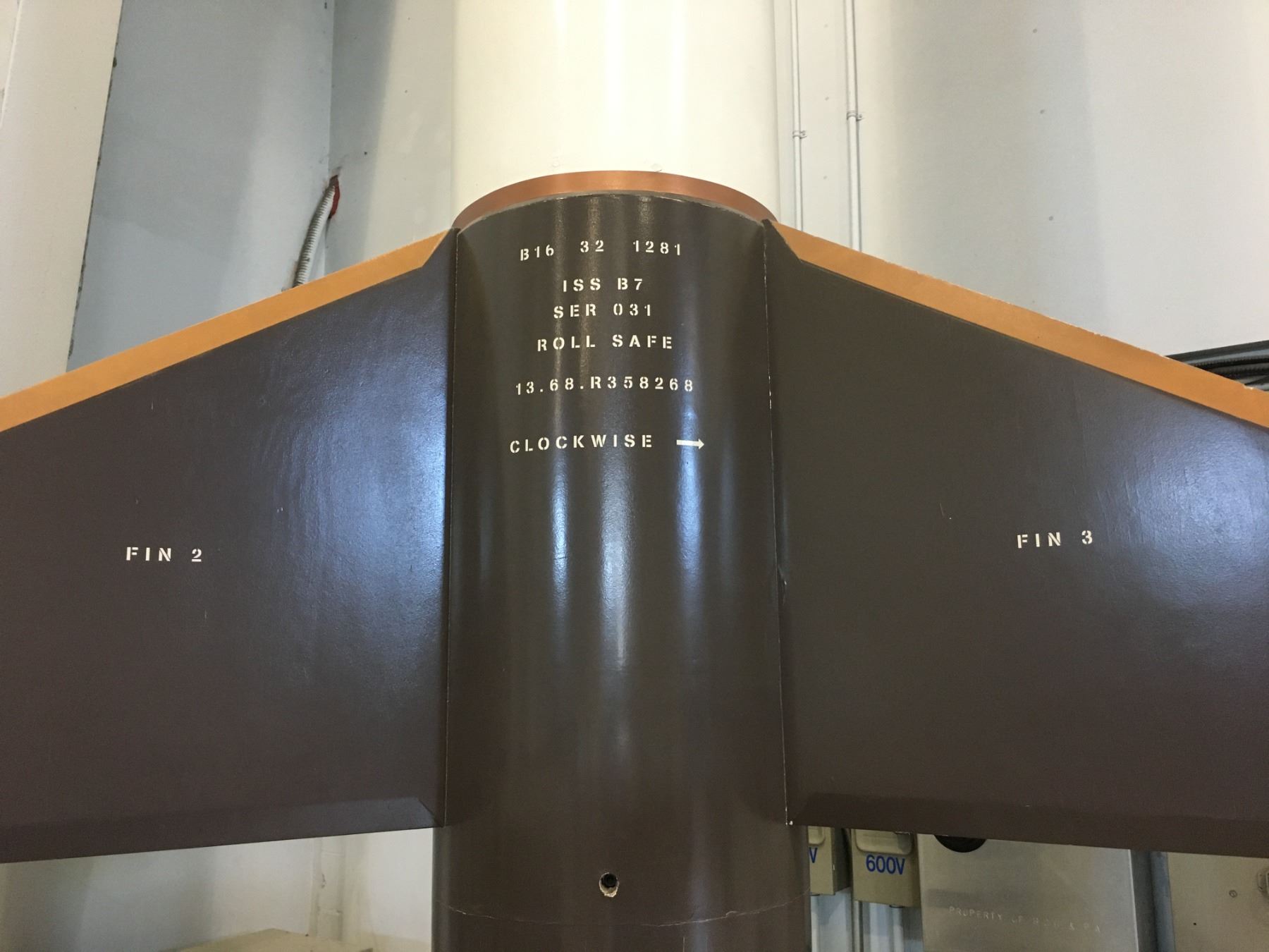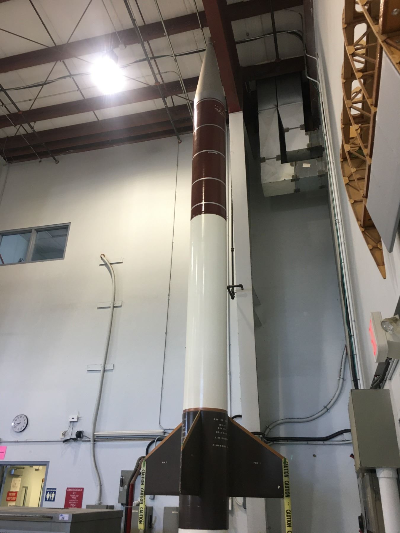 LARGE SCALE ROCKET-APPROX. 27' TALL W/ 18" DIAMETER, WOOD & CARDBOARD CONSTRUCTION COMES APART IN SECTIONS FOR TRANSPORT