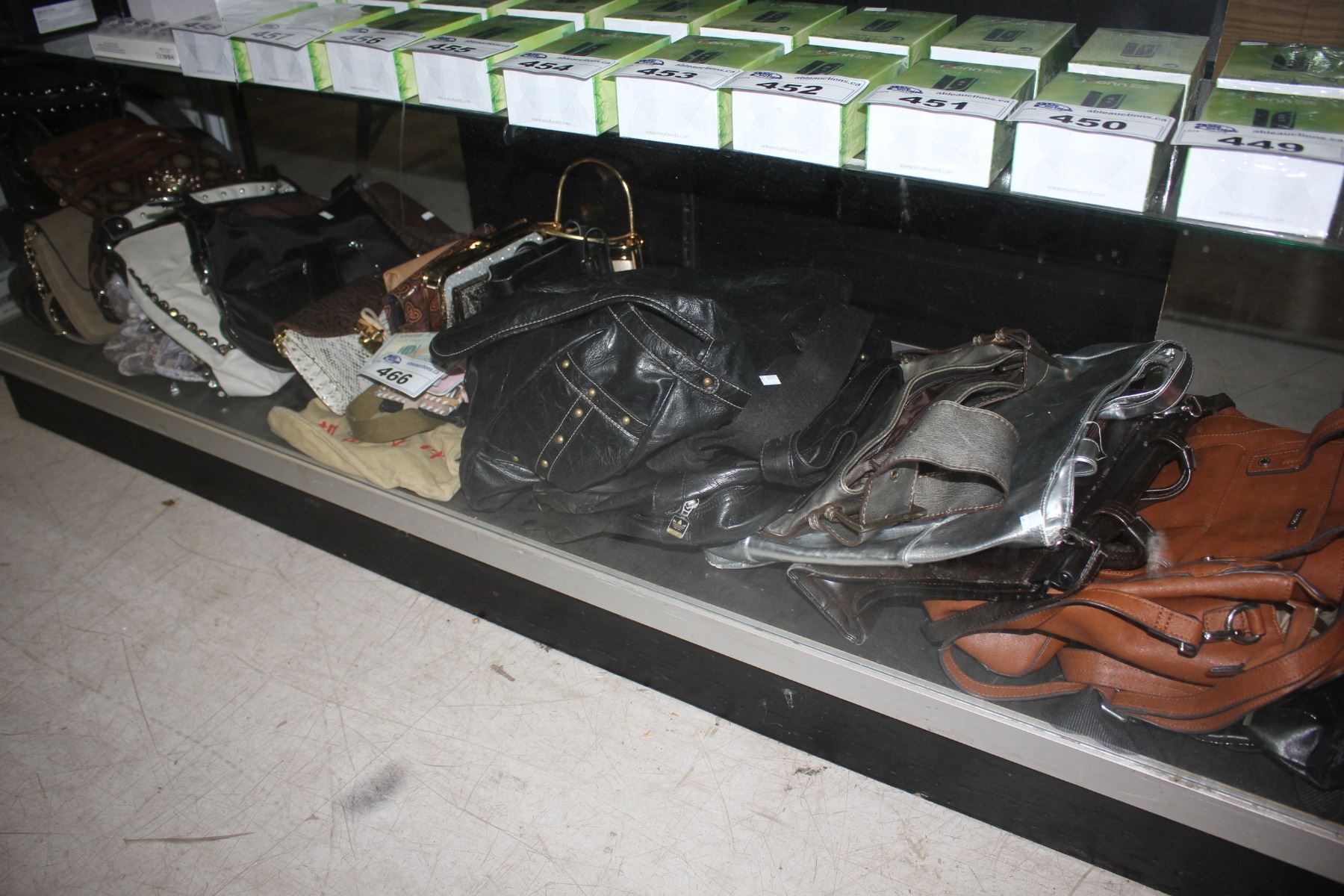 LARGE SHELF LOT OF ASSORTED DESIGNER PURSES & WALLETS