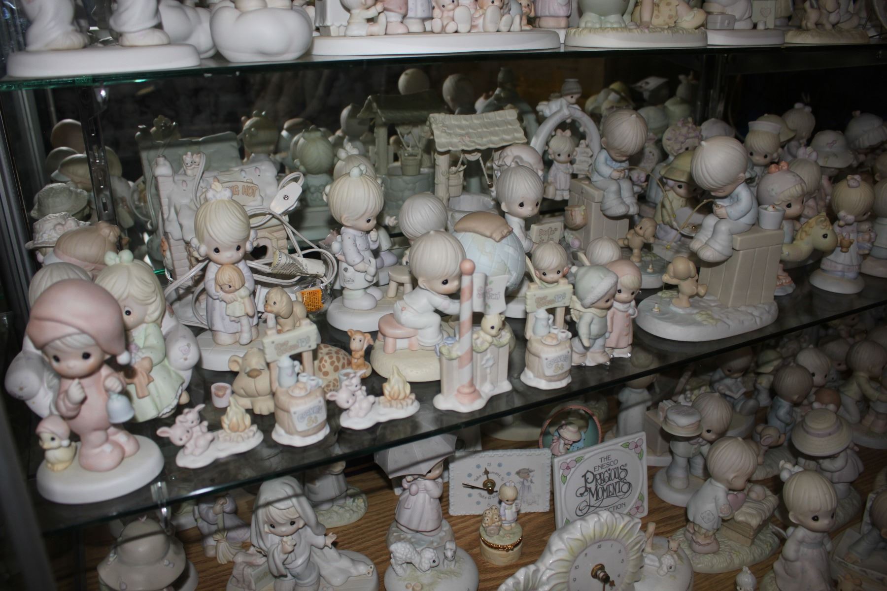LARGE SHELF LOT OF ASSORTED ENESCO PRECIOUS MOMENTS COLLECTABLE FIGURINES
